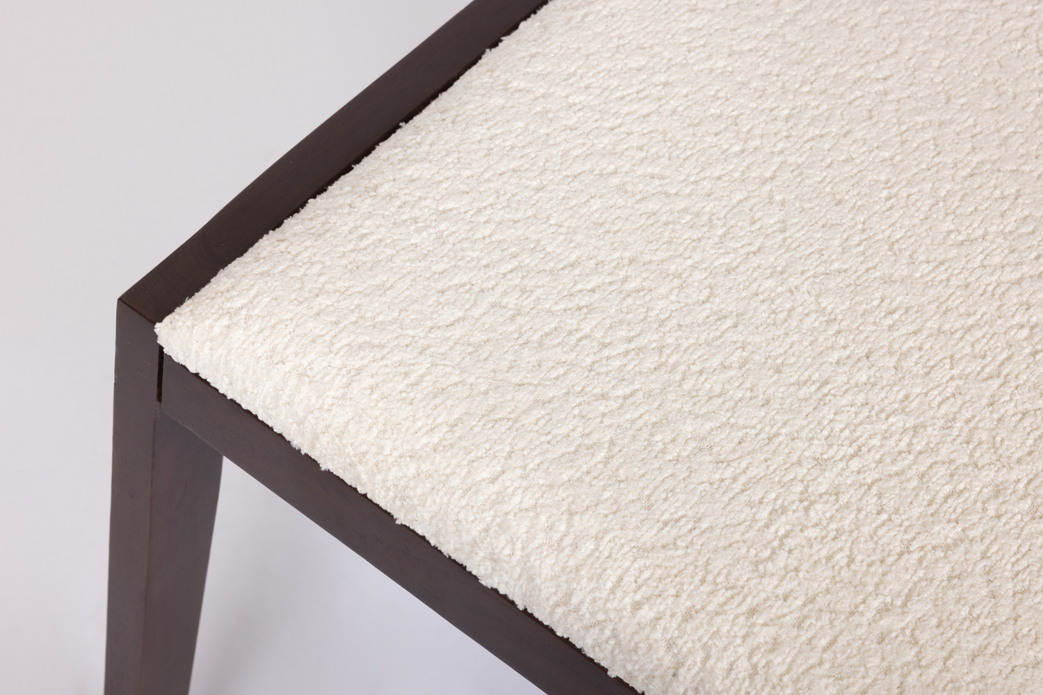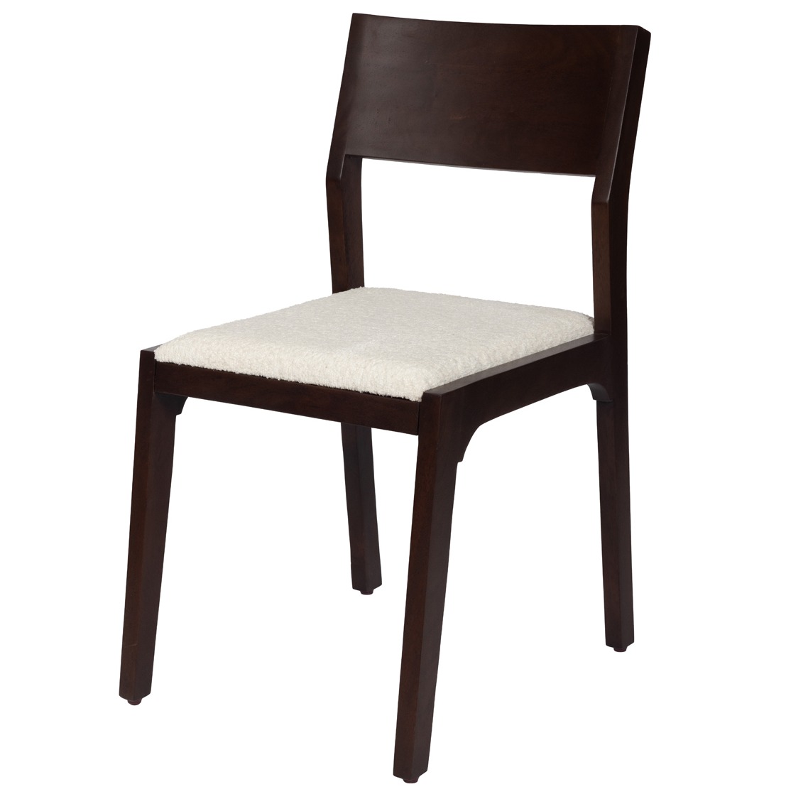 Обеденный стул Mead коричневого оттенка из массива дерева Манго, идеален для современной кухни-гостиной. Сиденье выполнено из модной ткани букле.