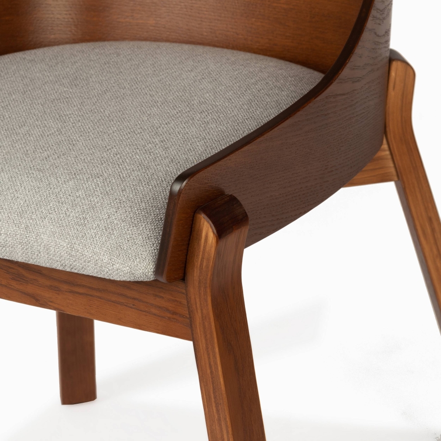 Стул обит мягким полиэстером в нежном сером цвете с кодом материала Madrid Latte, что делает его универсальным и легко сочетаемым с различными стилями интерьера.