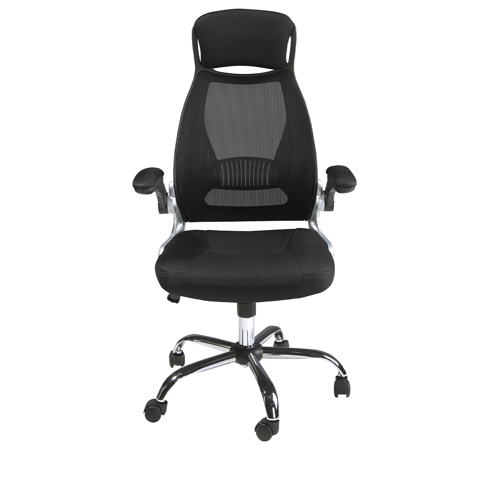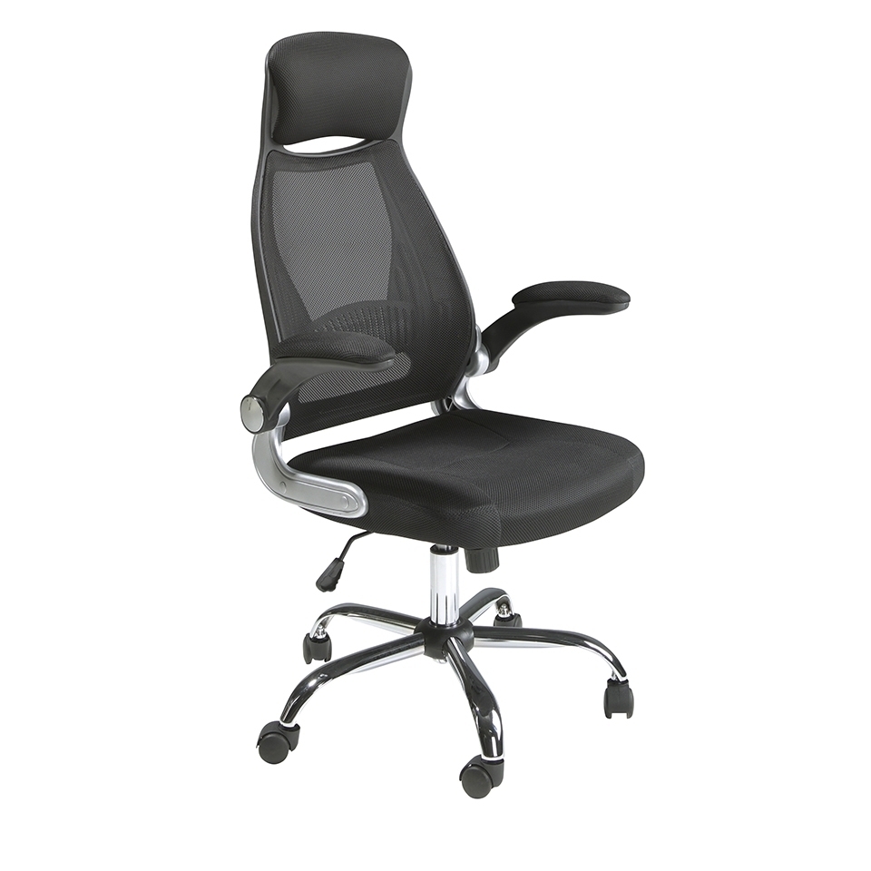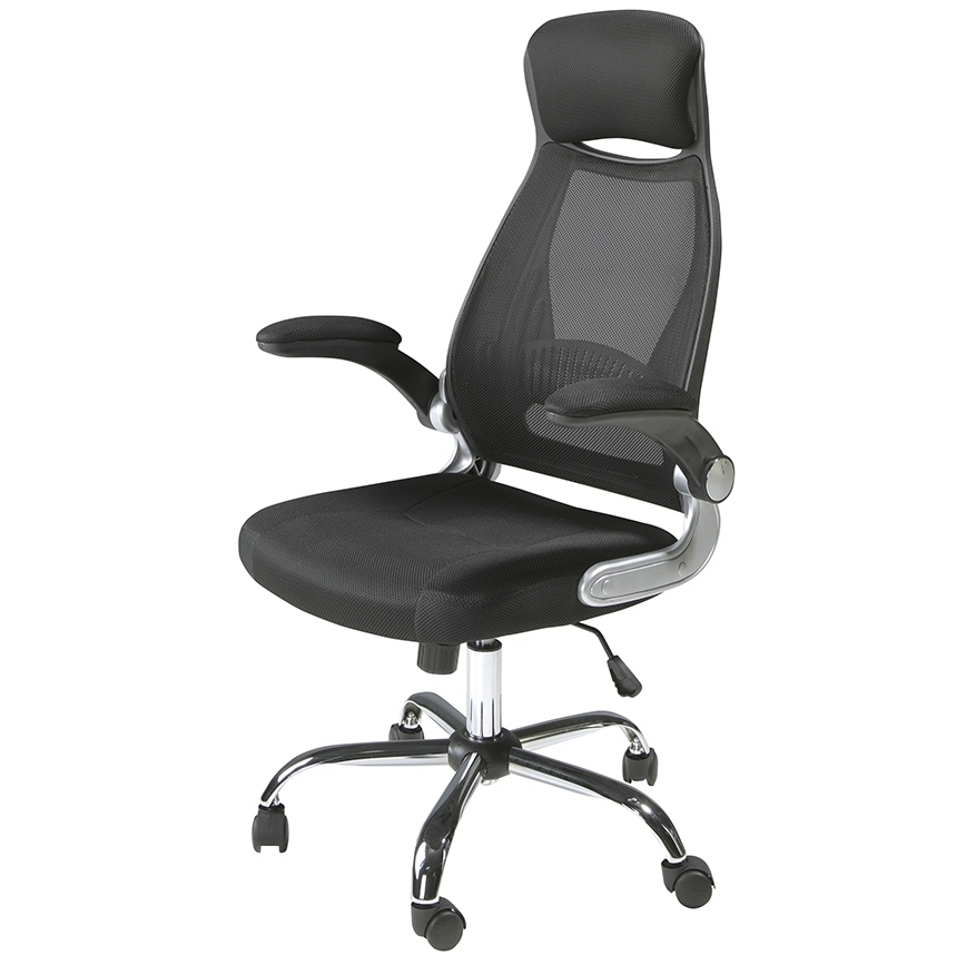 Поворотное офисное кресло с современным дизайном с сиденьем и спинкой, обитыми черной тканью. У него есть подлокотники, что делает его более удобным. Благодаря ножкам из хромированной нержавеющей стали и регулируемому по высоте сидению он станет важным для вашей рабочей зоны, не оставляя в стороне самый авангардный стиль. Его ролики обеспечат дополнительную практичность, необходимую для работы или учебы.