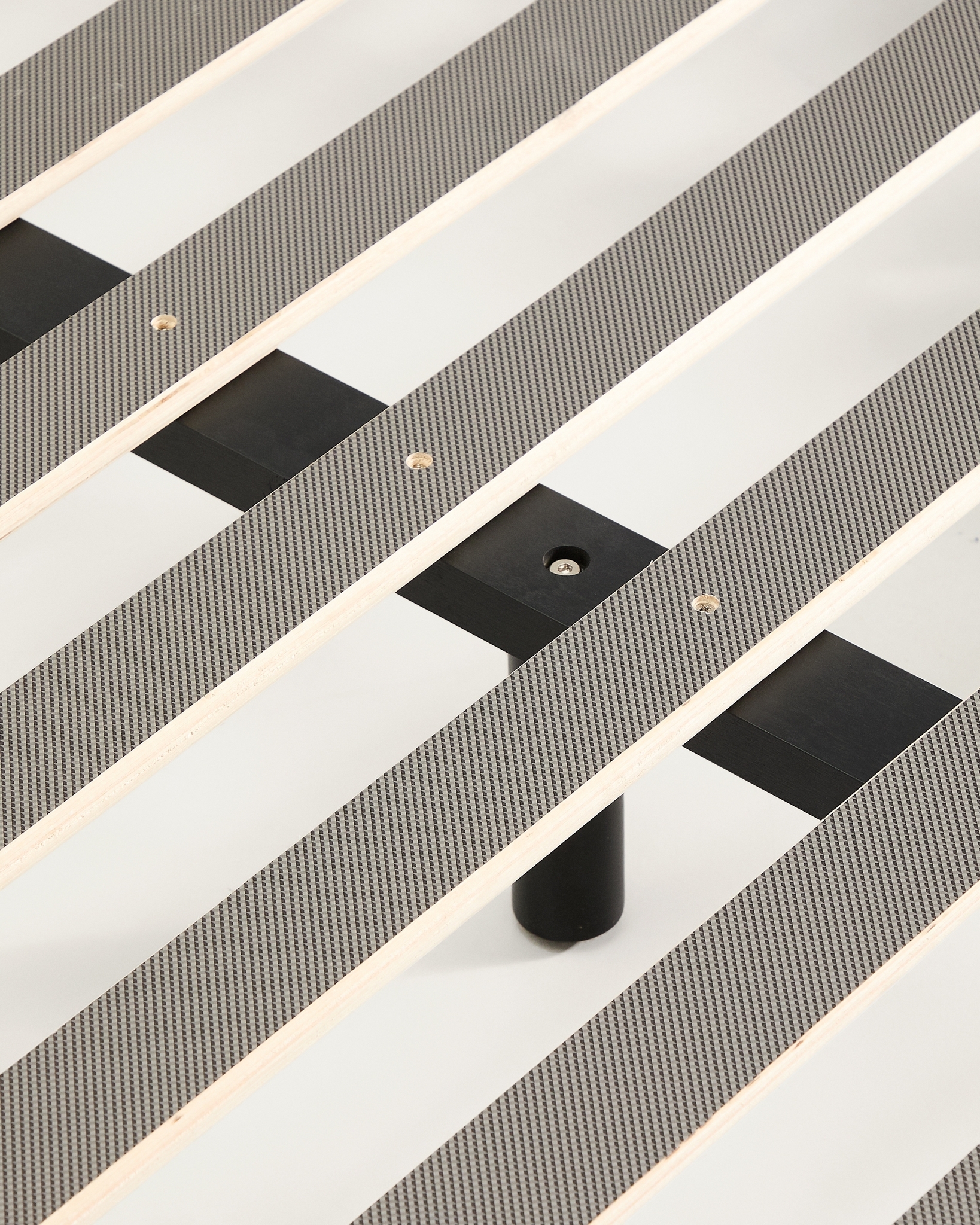 Norlen отдаёт дань уважения дизайну 1950-х годов в современной интерпретации, сочетая минималистичные формы и винтажные детали. Слегка закруглённые углы и деревянное основание создают ностальгическую атмосферу, переосмысленную благодаря чистым линиям и современным пропорциям. Это основание прочное и надёжное. Оно включает в себя основание с 14 берёзовыми фанерными ламелями, обеспечивающими идеальную поддержку и оптимальную вентиляцию матраса. 9 ножек из массива берёзы с элегантным круглым сечением и внешней отделкой из орехового шпона.