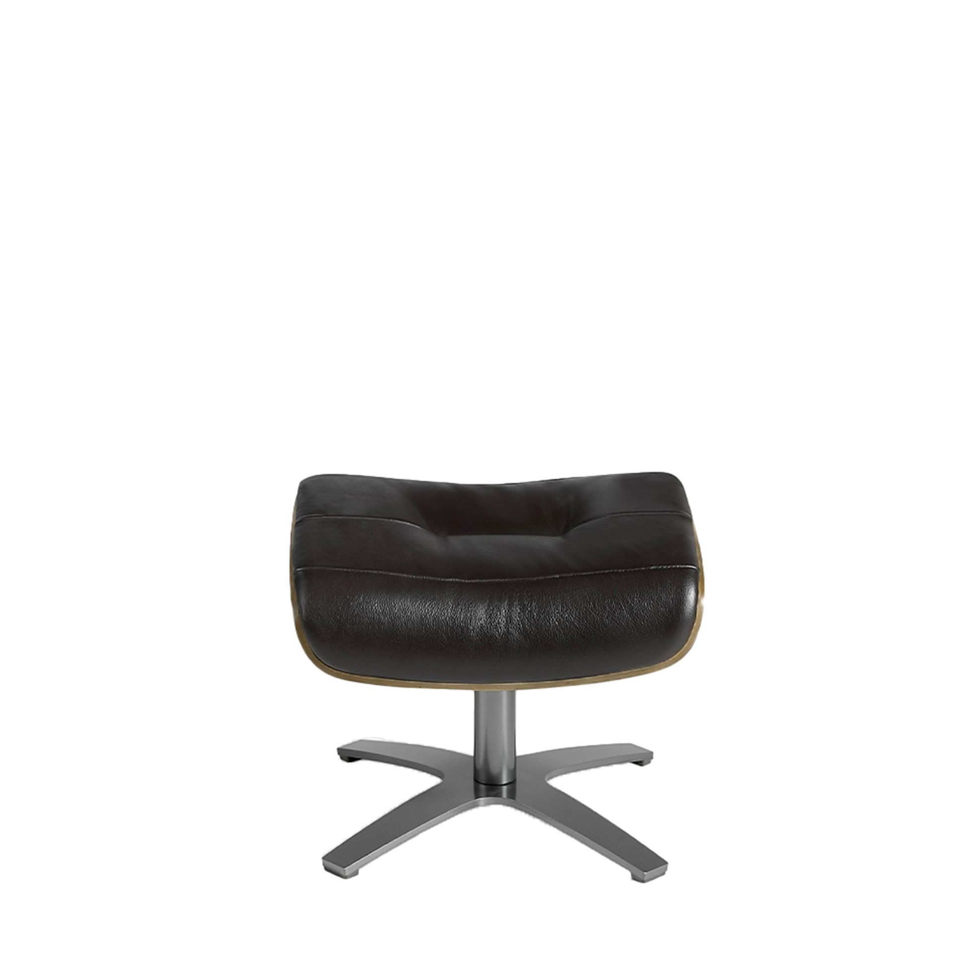 Оттоманка для кресла A928, обитая воловьей кожей, с основанием из вороненой полированной массивной стали. Несущая конструкция из древесины со шпоном из ореха.