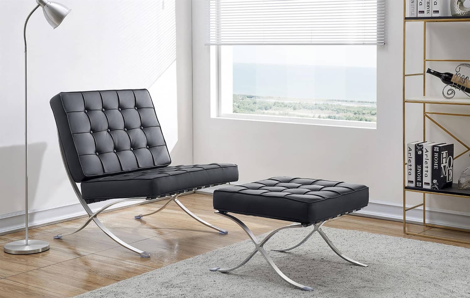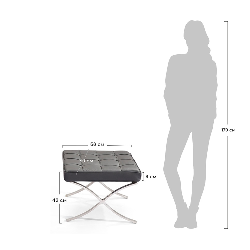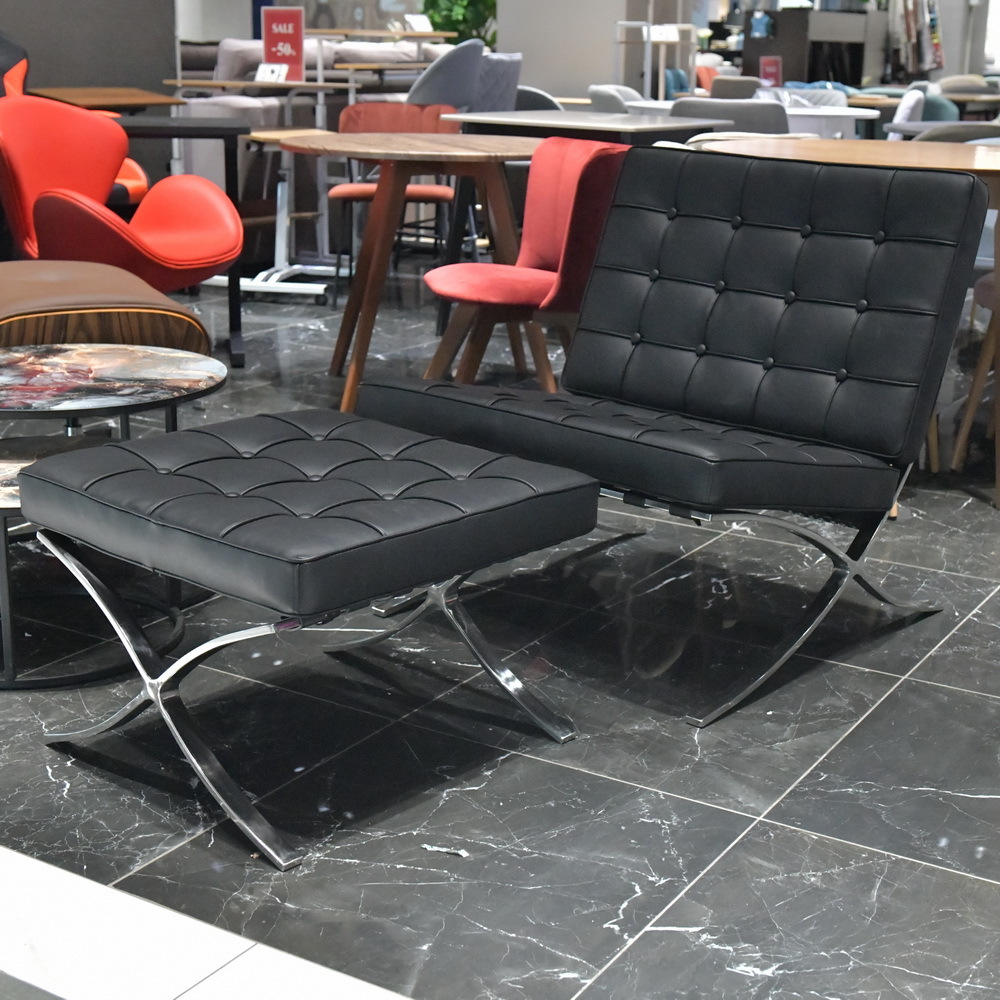 "Классика современного дизайна кресло и Оттоманка Barcelona, созданные Людвиг Мис ван дер Роэ в 1929 году по-прежнему остаются иконой дизайна. Этот предмет современного искусства идеально дополнит вашу гостиную, кабинет, зону отдыха, спальню или офис. Элегантное основание кресла, выполнено из полированной хромированной стали. Сидение и спинка выполнены из подушек индивидуального покроя, обеспечивающих оптимальную поддержку и комфорт. "
