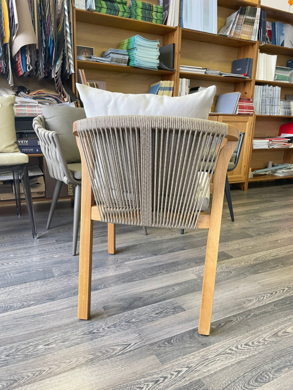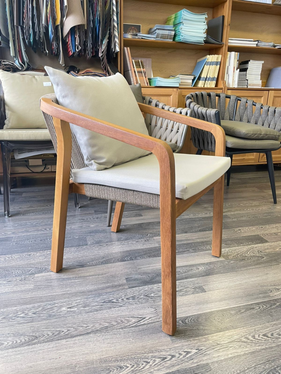 Кресло Pablito - идеальный вариант для использования на летних площадках различных заведений, но также подходит для частных террас и открытых пространств. Каркас выполнен из дерева - ироко или дуба. Древесина ироко отличается очень высокой прочностью, твердостью и сопротивлением нагрузкам, практически не подвержена воздействию различного рода вредителей, мебель из дуба имеет высокую износостойкость и может прослужить долгие годы без потери эстетического вида и эксплуатационных свойств. Плетение на спинке и подлокотниках выполнено из роупа натурального цвета. Подушки выполнены из ткани Etisilik®, которая обладает водоотталкивающими, маслоотталкивающими свойствами и устойчивостью к любым пятнам и воздействию УФ-излучения.