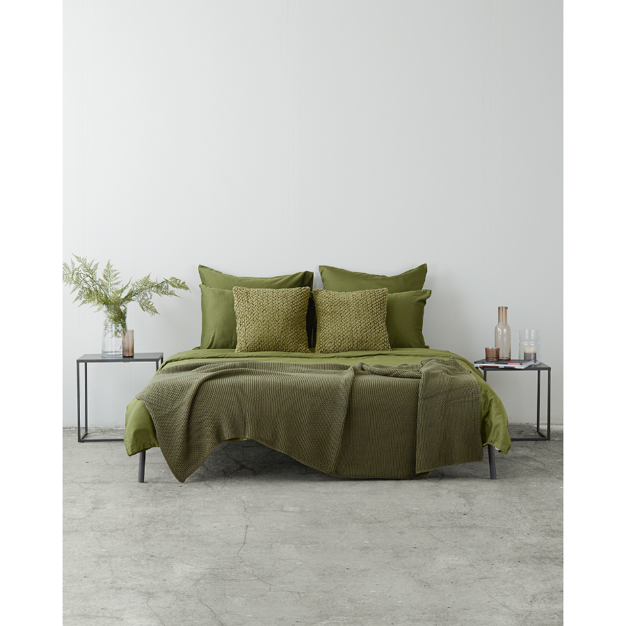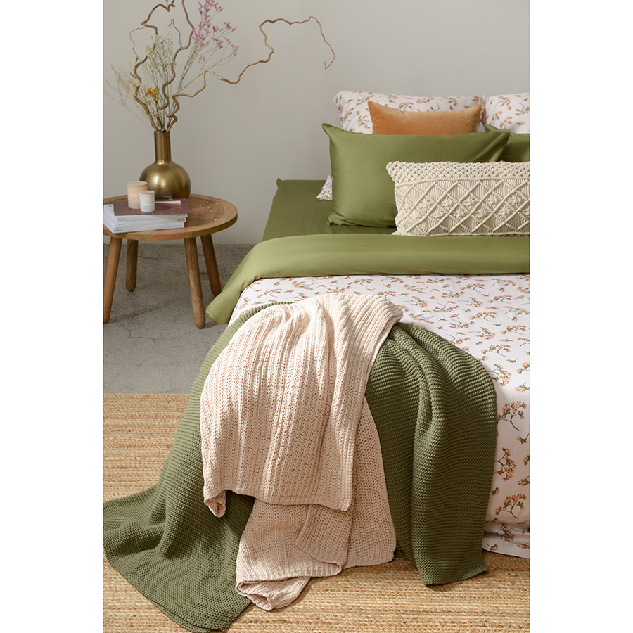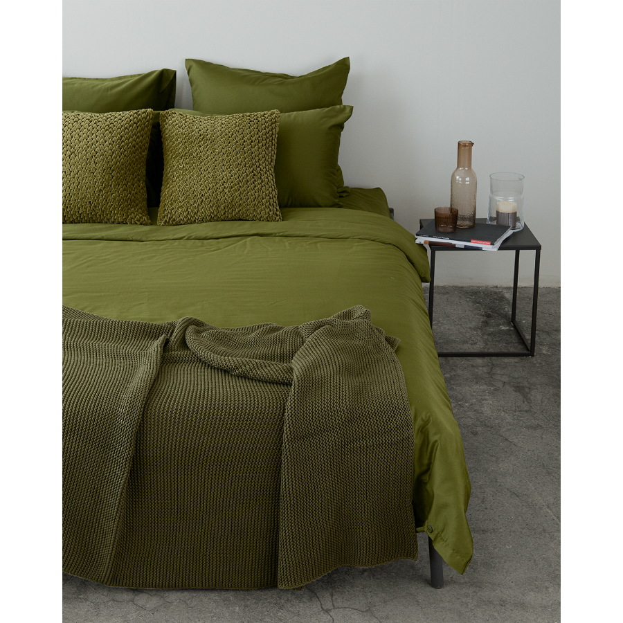 Плед оливкового цвета из хлопка жемчужной вязки из коллекции Essential – стильный аксессуар для спальни, гостиной или детской комнаты. Он выполнен из гипоаллергенного и приятного на ощупь натурального хлопка. Дышащий фактурный материал легкий и теплый. Изделие упаковано в брендированную крафтовую коробку. Размер: 130х180 см ! Максимальная температура стирки 30° C ! Гладить при максимальной температуре 110° C ! Возможна барабанная сушка при низкой температуре ! Не отбеливать ! Сухая чистка запрещена