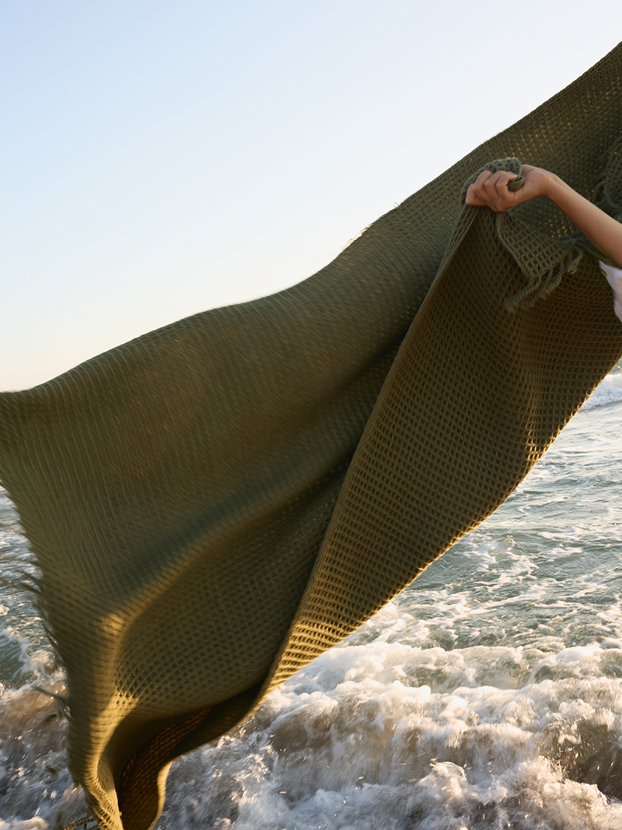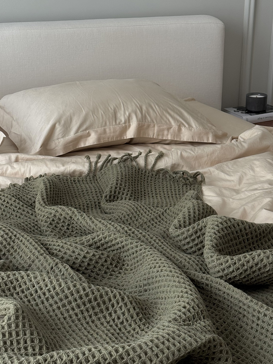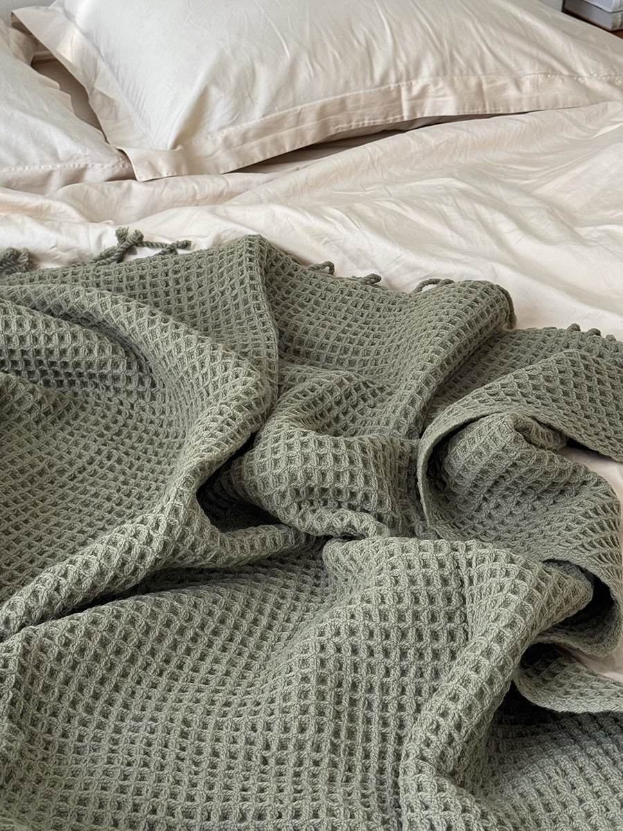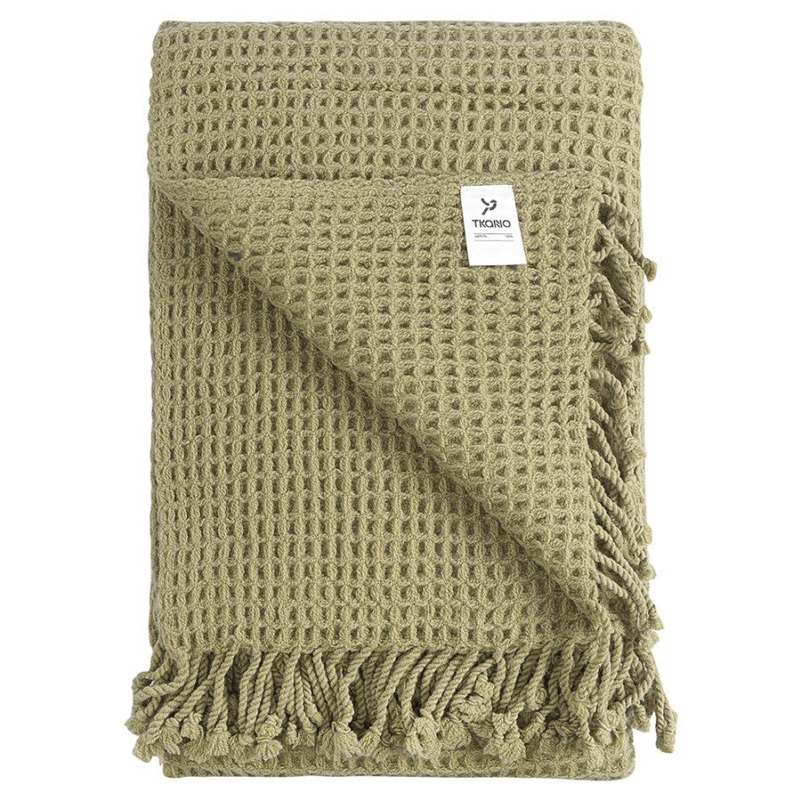 Плед из шерсти травянисто-зеленого цвета из коллекции essential, 130х180 см