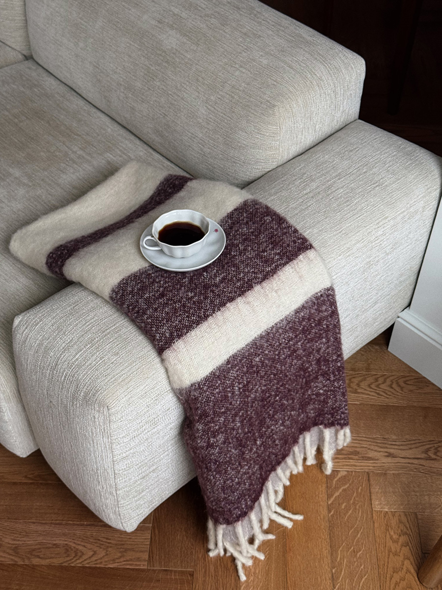 - Благодаря эффектному цветовому решению плед гармонично смотрится в сдержанных интерьерах в стиле сканди, арт-деко, рустик.