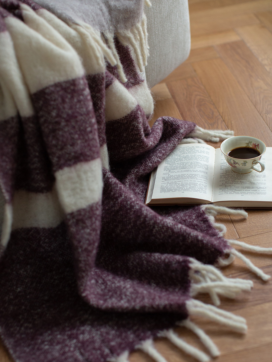 Материалы: 80% шерсть, 20% мохер. Размеры: 130х180 см. Цвет: марсала.