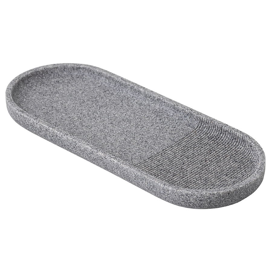 Подставка для ванных принадлежностей Loup выполнена из полирезина, стилизованного под натуральный камень графитового оттенка.