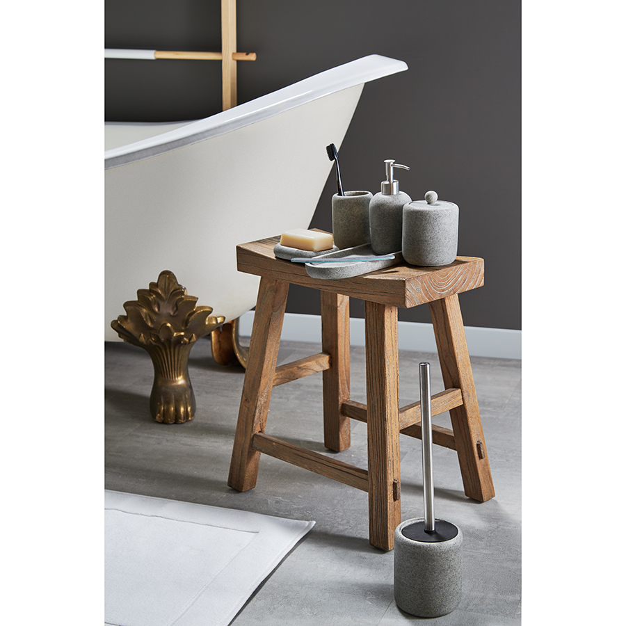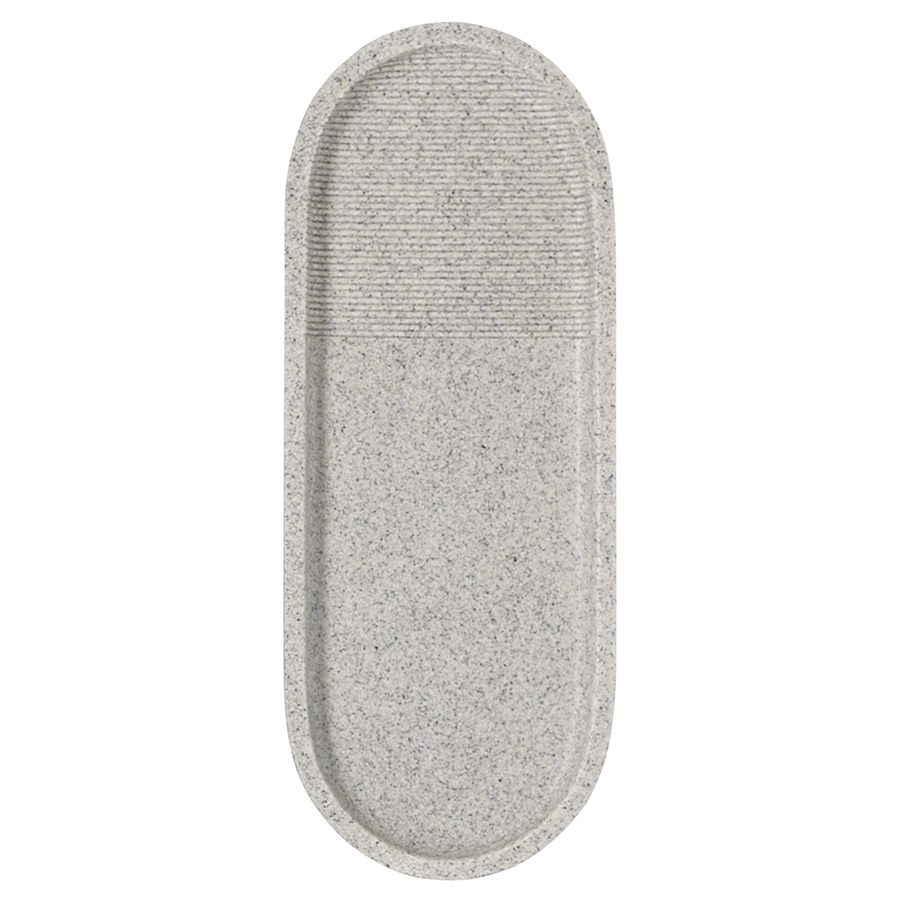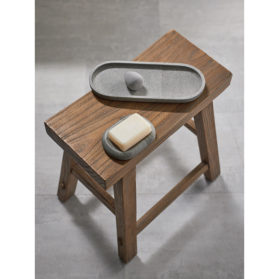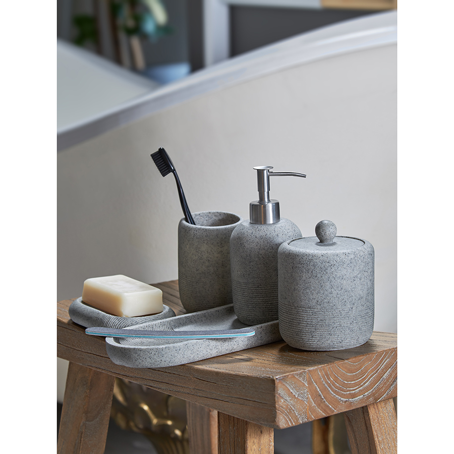 Подставка для ванных принадлежностей Loup выполнена из полирезина, стилизованного под натуральный камень темно-серого оттенка. Материал легко моется, отличается устойчивостью к влаге, ударам и царапинам, что делает его идеальным выбором для ванной комнаты. На такой подставке можно удобно разместить диспенсер для мыла и стакан для зубных щеток, чтобы защитить используемую под них поверхность от капель воды и загрязнений.