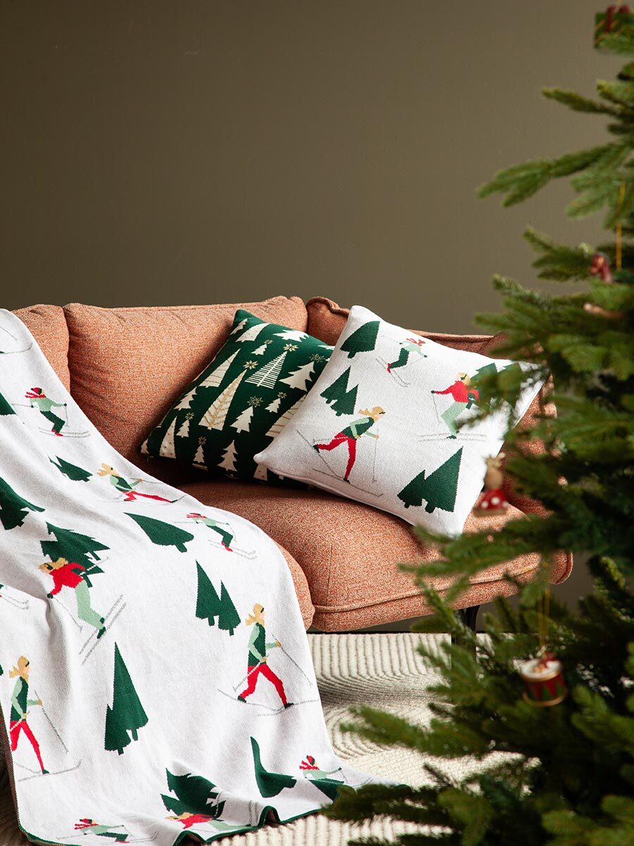 Подушка вязаная с новогодним рисунком Let's Ski из коллекции New Year Essential позволит окунуться в сказочную атмосферу зимних праздников. Она станет не только стильным акцентом, но и тем самым элементом, который сделает интерьер по-настоящему теплым и живым. Положите ее на диван или кресло, украсьте ею уголок у камина или детскую – и в доме сразу появится ощущение уюта и приближающихся чудес.
