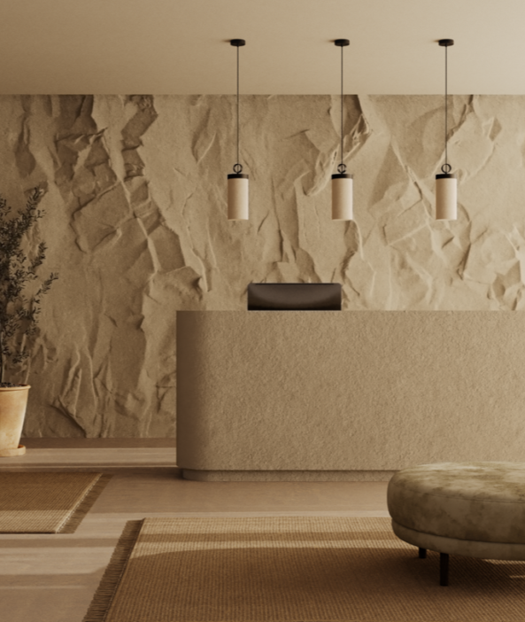Подвесной светильник, выполненный из металла в черной отделке и абажуром из натурального льна.