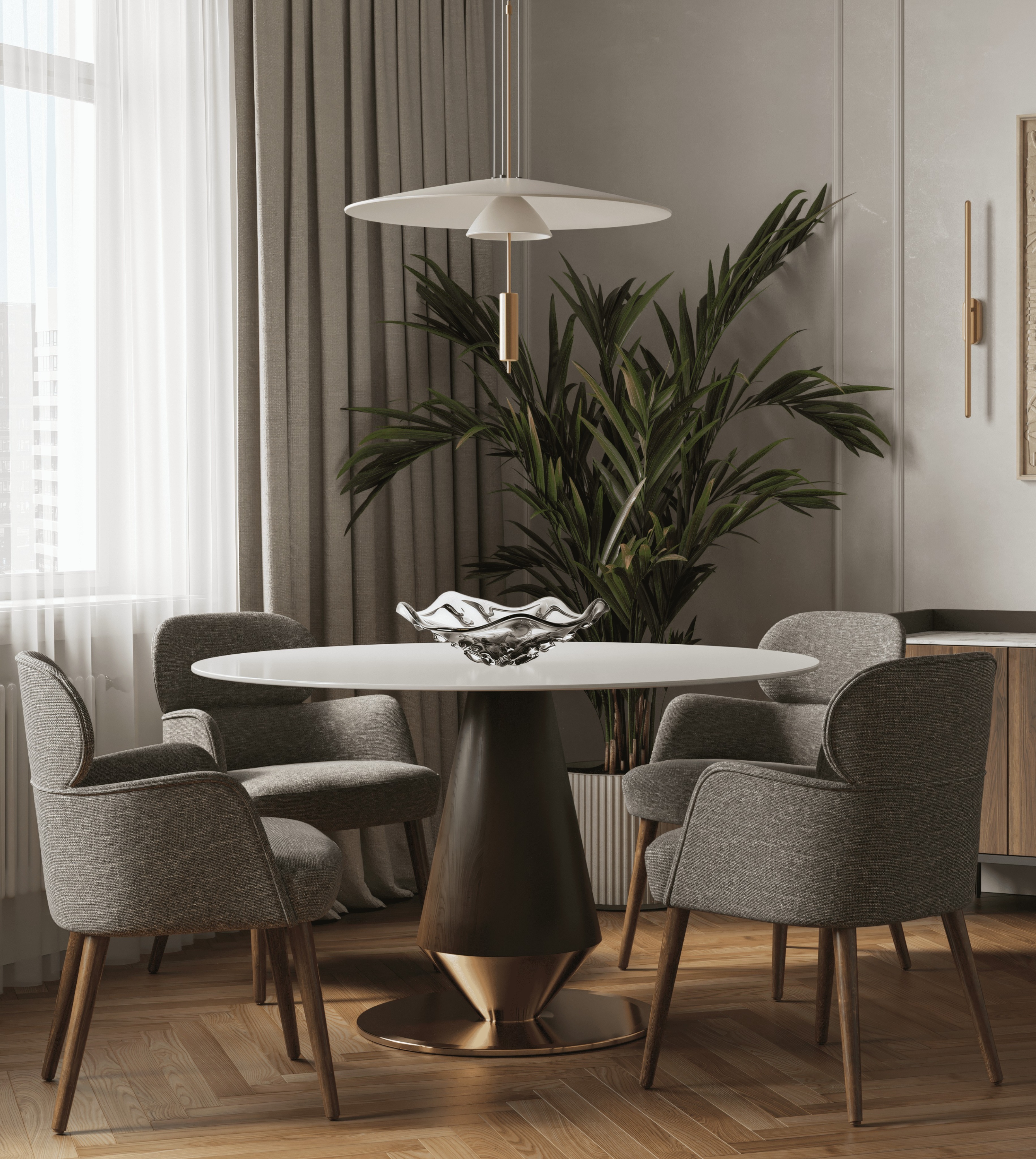 Подвесной светильник Rony – это стильный и современный элемент освещения, который станет изысканным акцентом в вашем интерьере.Светильник словно парит над вашем обеденным местом, делая пространство просторным и свободным.