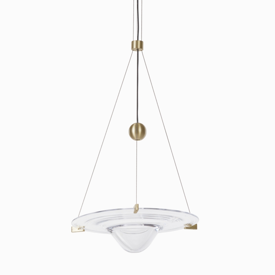 Подвесной светильник Saturn Ø35 см сочетает в себе прозрачное стекло и золотистую арматуру, создавая современный и элегантный стиль. Идеально подходит для освещения интерьера дома или офиса, добавляя изысканность и уют. Светильник оснащён LED лампой, что обеспечивает экономичное и долговечное освещение.
