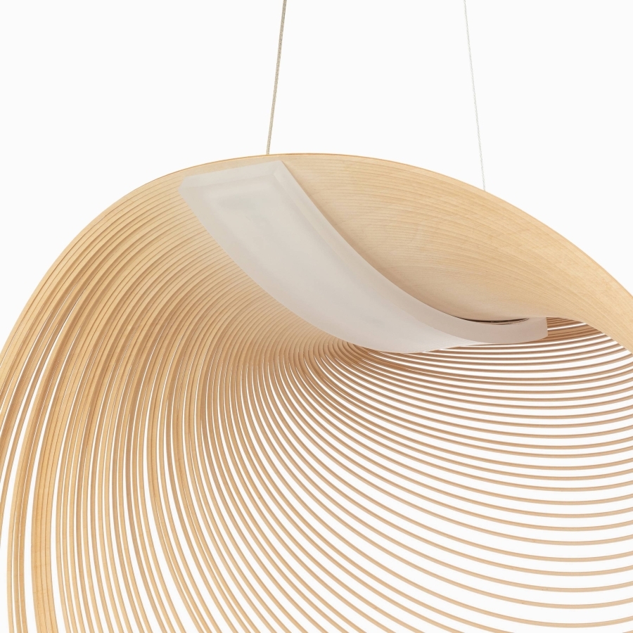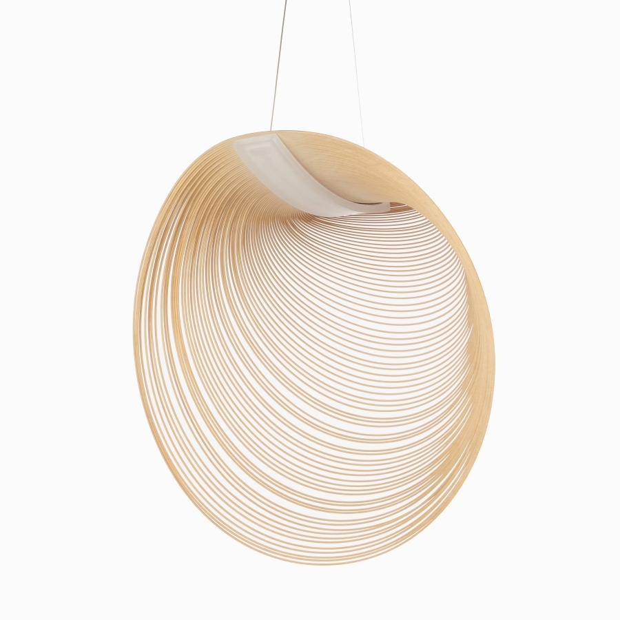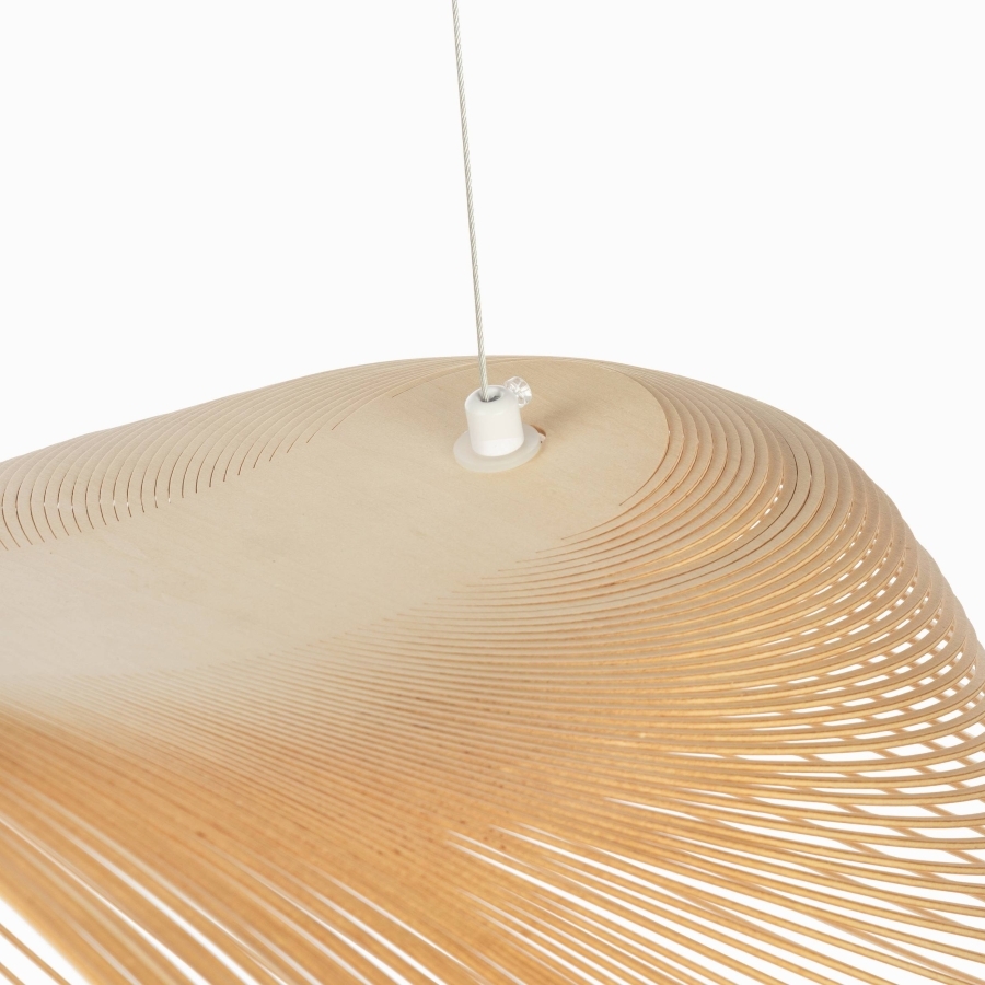 Изготовлен из дерева, что придаёт светильнику натуральный и теплый вид. Светло-коричневый, который легко вписывается в различные стили интерьера, от скандинавского до современного.