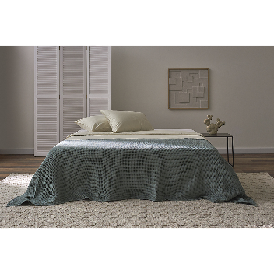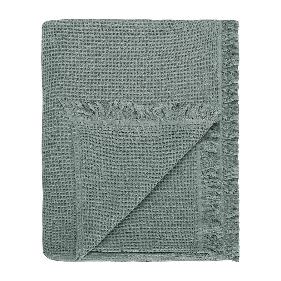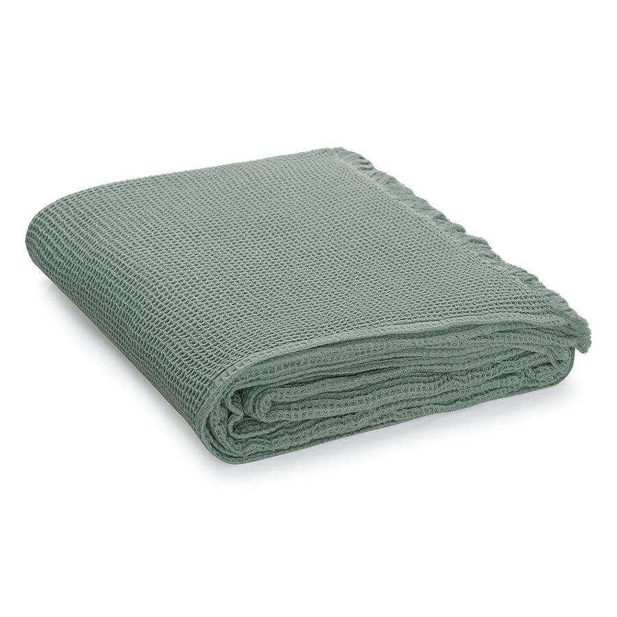 Покрывало вафельное из хлопка цвета шалфея из коллекции essential, 180х250 см