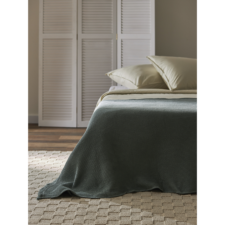 Покрывало вафельное из хлопка цвета шалфея из коллекции essential, 230х250 см