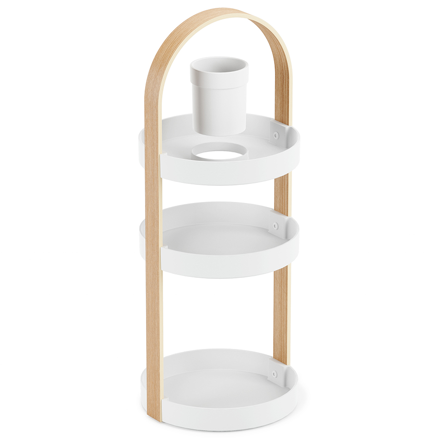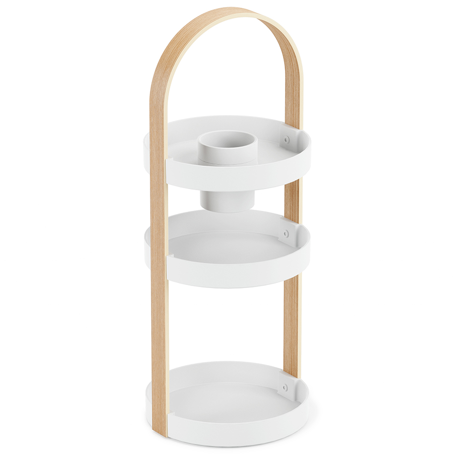 Органайзер оборудован 3 лотками и деревянной ручкой для удобной транспортировки. Дополнительный съемный контейнер, который легко устанавливается на верхней полке, идеально подходит для хранения кистей для макияжа.