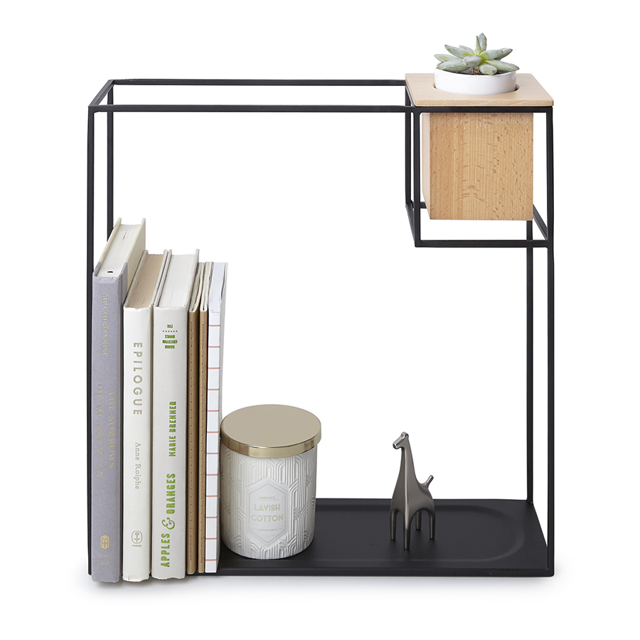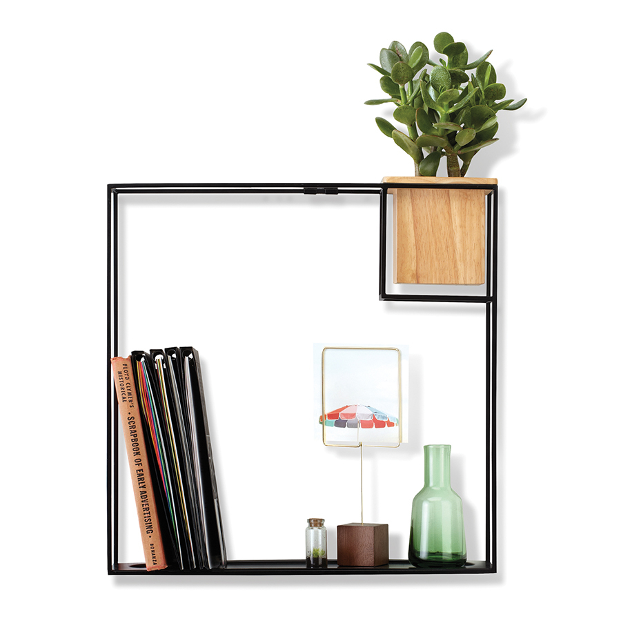 Строгие геометрические формы не ограничивают воображение, а наоборот, вдохновляют на творчество и создание неповторимых интерьеров. Легкий каркас этой полки создает эффект невесомости, вещи будто парят в воздухе. Деревянный кубический контейнер отлично дополняет композицию: он может служить подставкой для канцелярских мелочей или кашпо для цветов. Можно поставить на стол или повесить на стену (крепления в комплекте). Выдерживает до 6,8 кг.