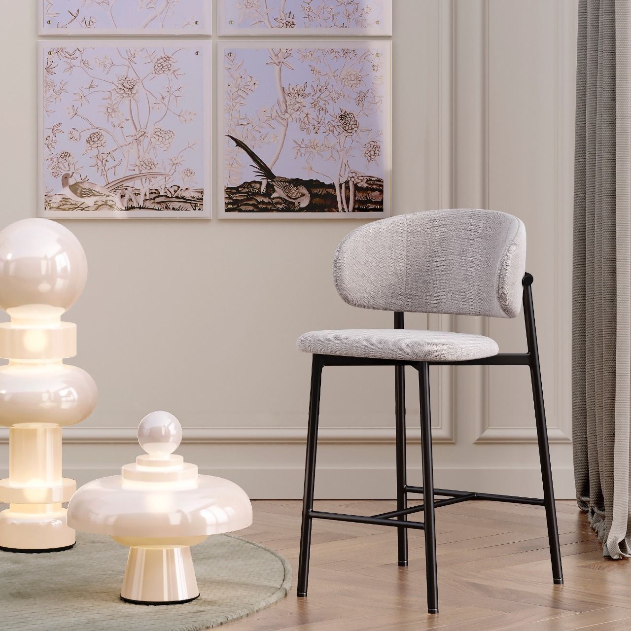 Металлические опоры черного матового цвета. На опорах предусмотрены защитные пластиковые накладки, которые придают стулу дополнительную устойчивость и защищают пол от царапин.