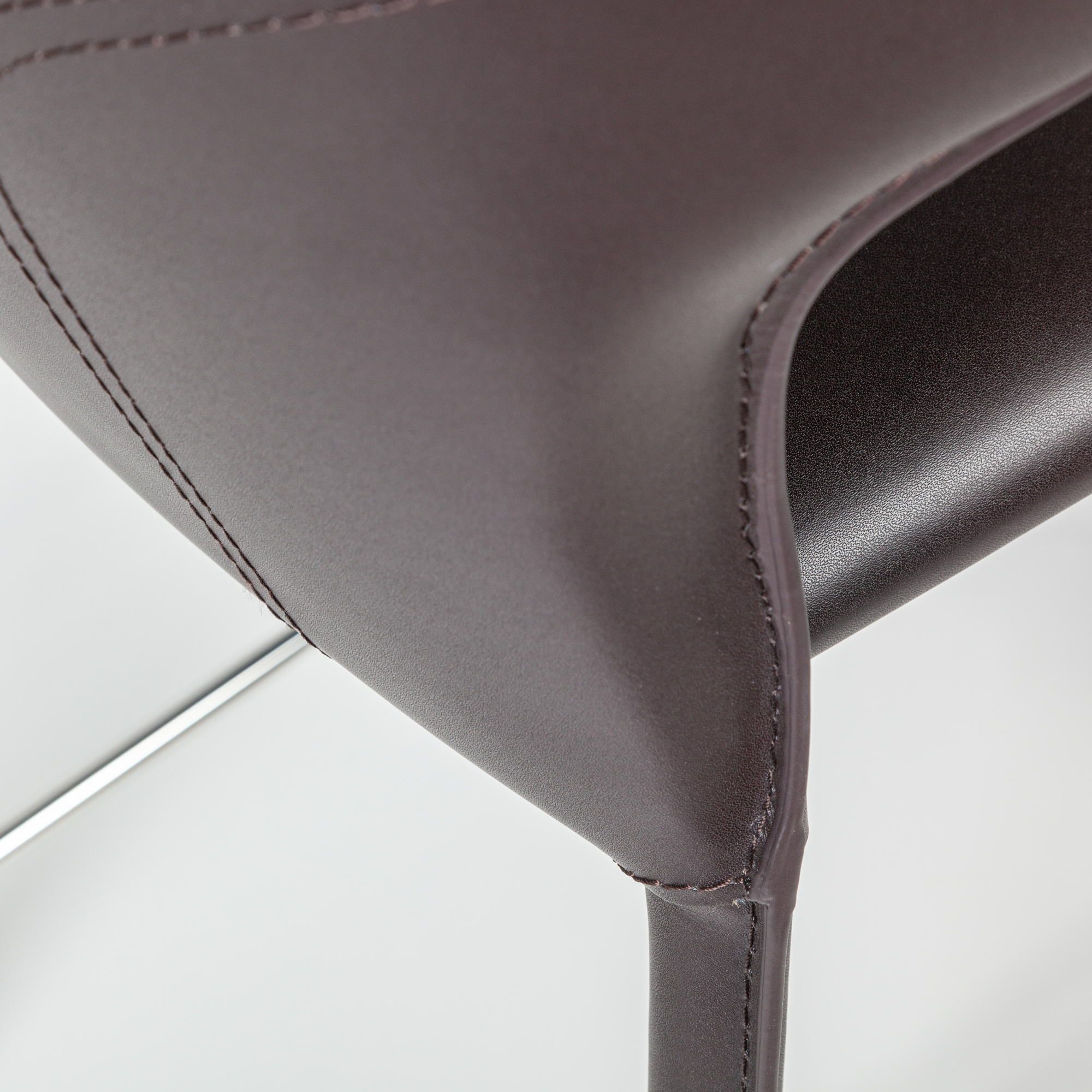 strong*В зависимости от Вашего монитора и освещения в помещении ЦВЕТОПЕРЕДАЧА может отличаться./strong В модели Austin чувствуется стиль и респектабельность. Эта модель выглядит солидно, в ней соединились традиционность и величавость. Полукруглая эргономичная спинка стула с выступающими по бокам элементами напоминает английское каминное кресло, адаптированное под современную стилистику. Прекрасно подойдет для ресторана или отеля, и конечно будет уместен в уютной домашней обстановке, создавая спокойную атмосферу и демонстрируя хороший вкус владельца. Обивка Данная модель - настоящая находка для ценителей натуральной кожи, ведь она способна превратить любое помещение в дорогое и презентабельное! Обивка стула выполнена в регенерированной коже – обивочном материале, который сделан путём переплетения расщеплённых волокон натуральной кожи. В состав модифицированной кожи также входят полимеры и специальные дубильные добавки. За ней не требуется специального ухода. Она не впитывает влагу и запахи, что особенно актуально для кухонного пространства. Цвет: Коричневый (Темный шоколад) Насыщенный и глубокий коричневый, практически уходящий в черный - спокойный и одновременно «живой», позволяет создать неординарную обстановку, излучающую хороший вкус ее владельцев. Огромным плюсом этого благородного цвета является то, что он не утомляет и никогда не приедается. В плане оформления интерьера этот цвет будет очень удачным для реализации современных дизайнерских идей. Каркас Надежный каркас – основа безопасного и спокойного отдыха. В модели стула Austin устойчивость и максимальная безопасность обеспечена металлическим каркасом, благодаря которому вы можете быть уверены в долгом сроке службы стула вне зависимости от условий эксплуатации. Наполнитель В качестве наполнителя используется литой (формованный) пенополиуретан высокой плотности. Даже при длительном использовании он не теряет форму и не деформируется. Такое наполнение гарантирует долгий срок службы изделия, что особенно важно для коммерческого использования (при эксплуатации в сегменте HоReCa). Ножки Изюминка стула Austin – невероятно тонкие металлические ножки, излишне скошенные назад, как часть дизайнерской задумки. Ножки обиты регенерированной кожей, на них предусмотрены специальные пластиковые накладки, которые придают стулу дополнительную устойчивость и защищают пол от царапин. Гарантия Тщательная проверка качества изделий осуществляется на всех этапах производства: от подбора материалов и комплектующих до проверки готового изделия перед отправкой. На все изделия Top concept мы предоставляем гарантию 12 месяцев.