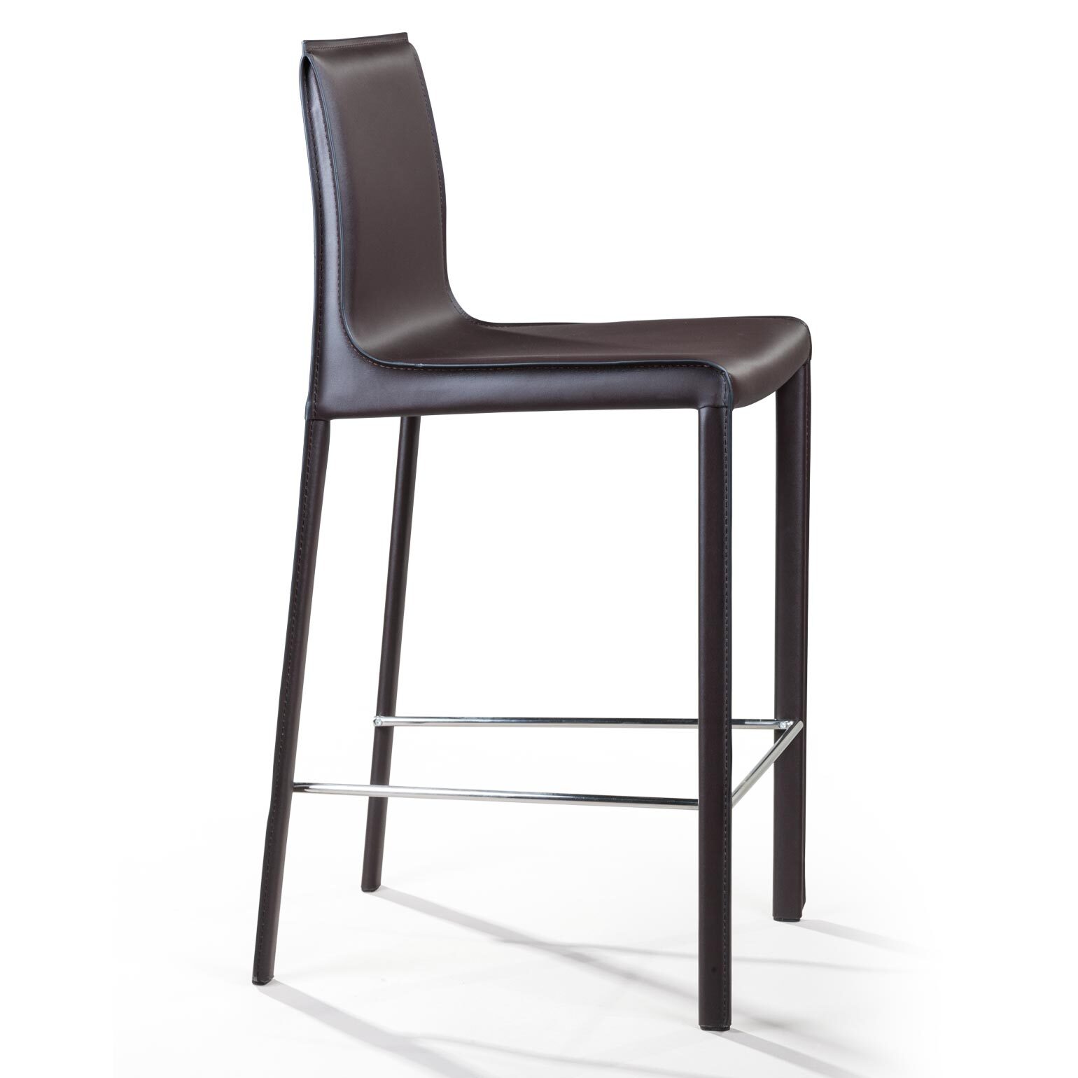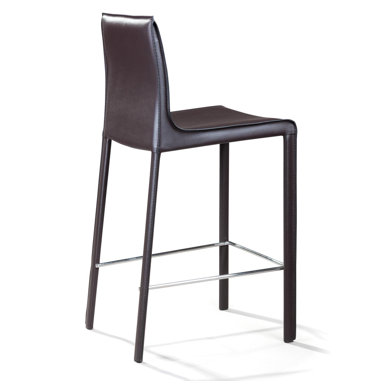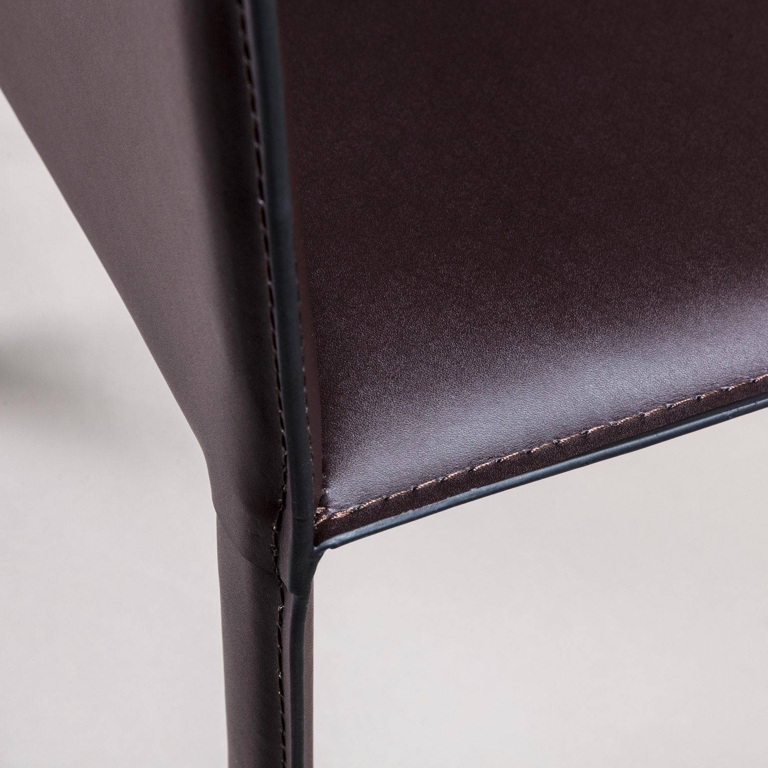 Крепкие металлические ножки скрыты под натуральной кожей такого же цвета, как и сам стул, благодаря этому создается лаконичный образ единого целого. На ножках предусмотрены хромированная подставка для ног и специальные пластиковые накладки, которые придают полубарному стулу дополнительную устойчивость и защищают полот царапин.
