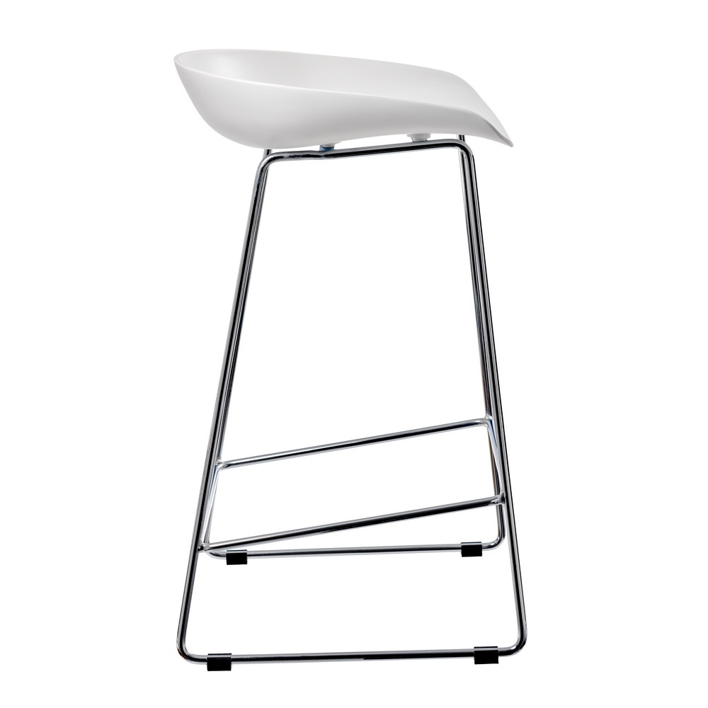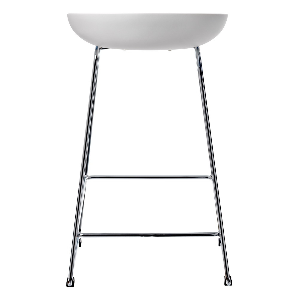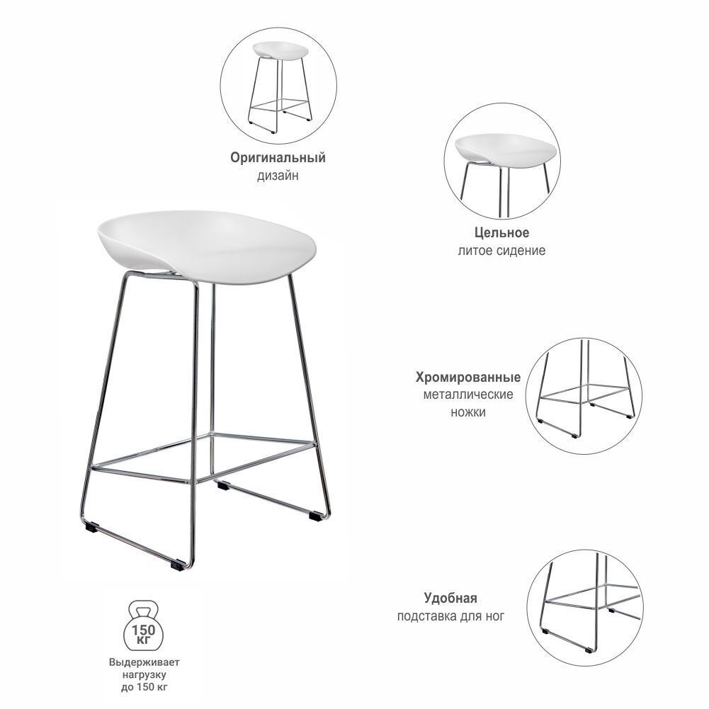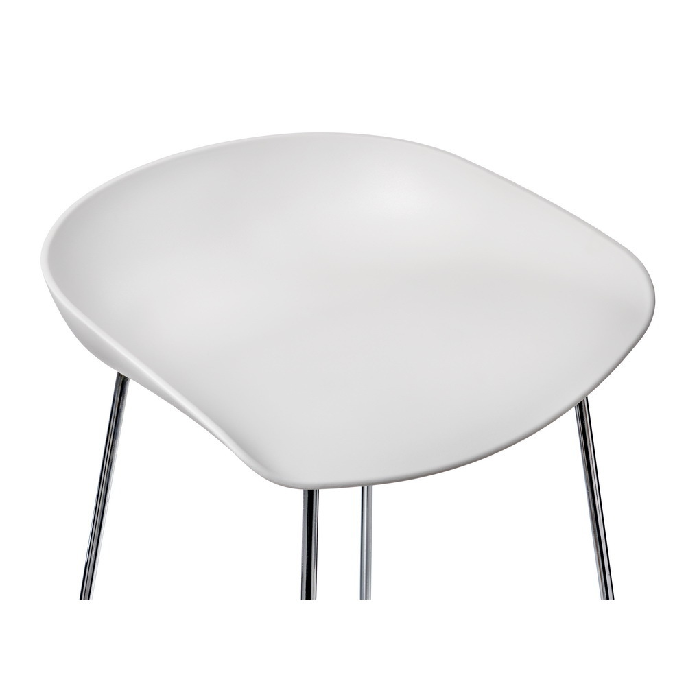 Утончённые металлические хромированные опоры, сиденье из пластика с невысокой спинкой - это минималистический современный дизайн полубарного стула Noel белый.
