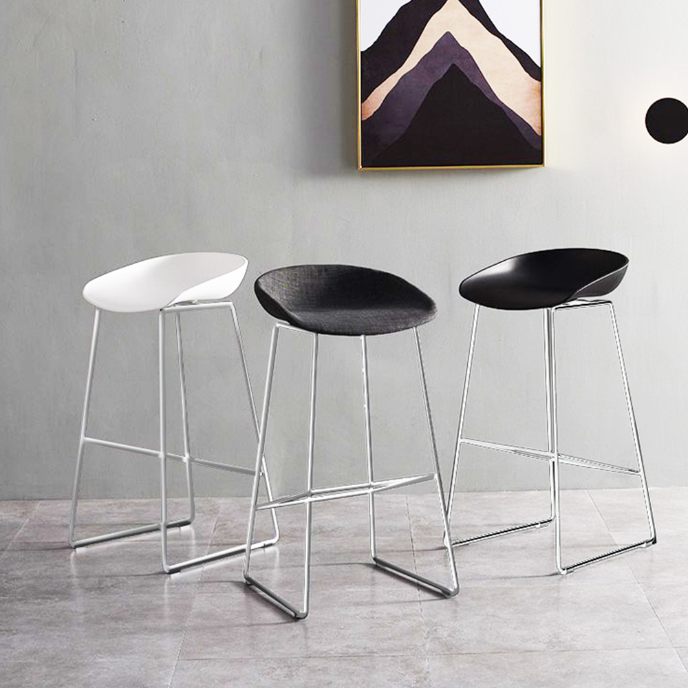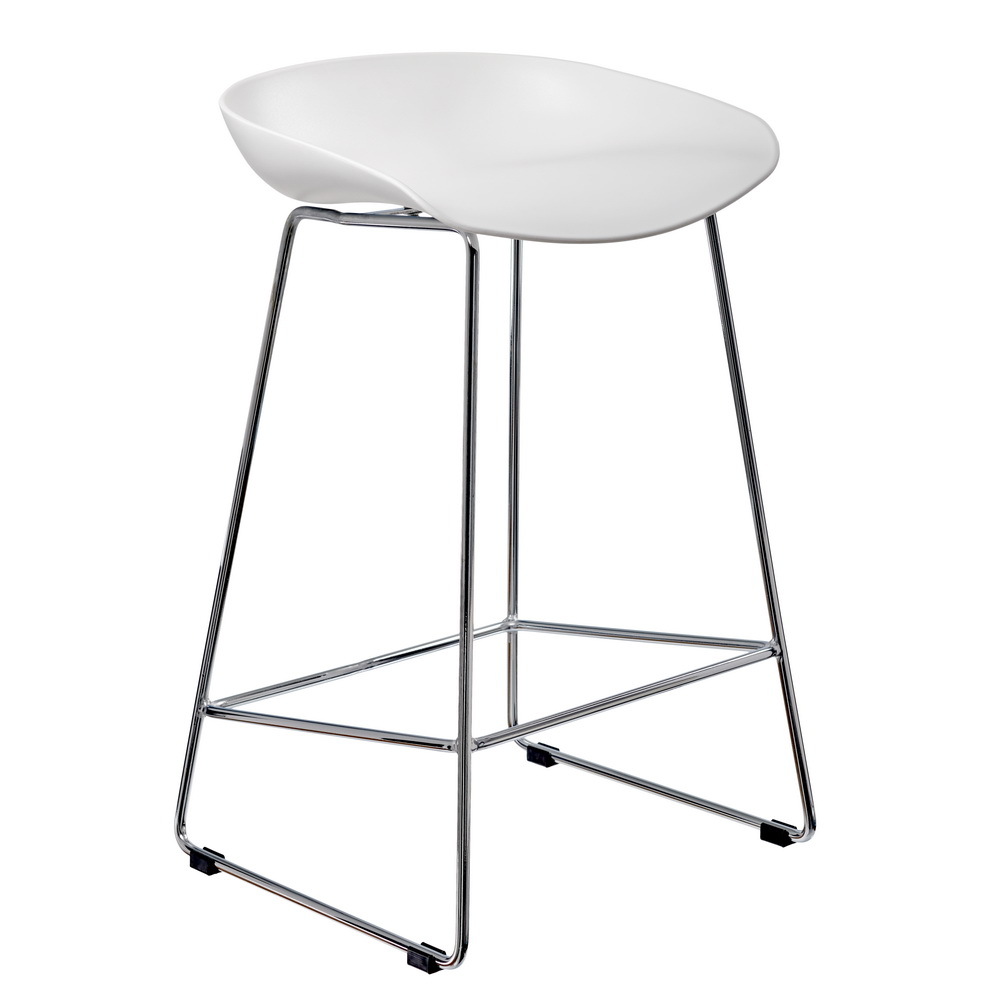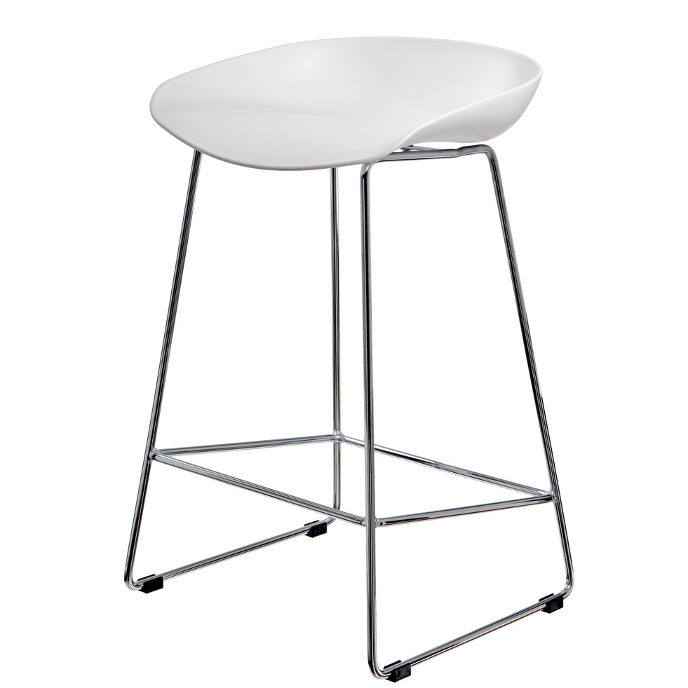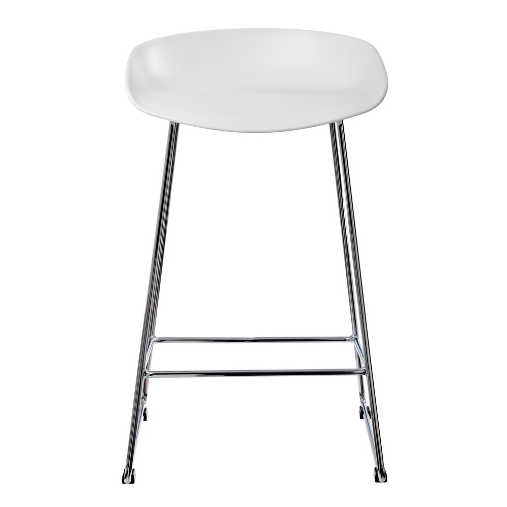 Утончённые металлические хромированные опоры, сиденье из пластика с невысокой спинкой - это минималистический современный дизайн полубарного стула Noel белый.