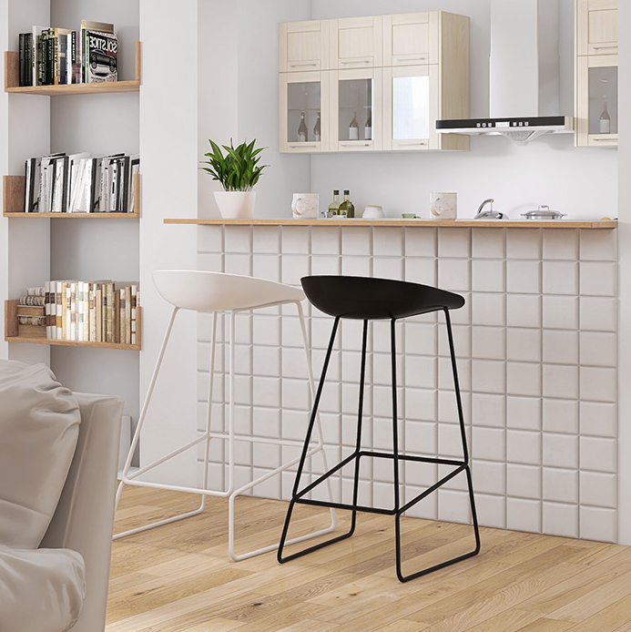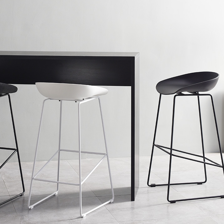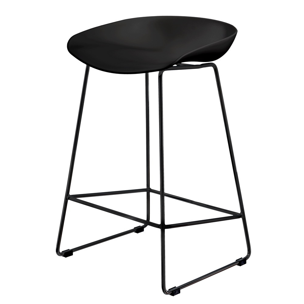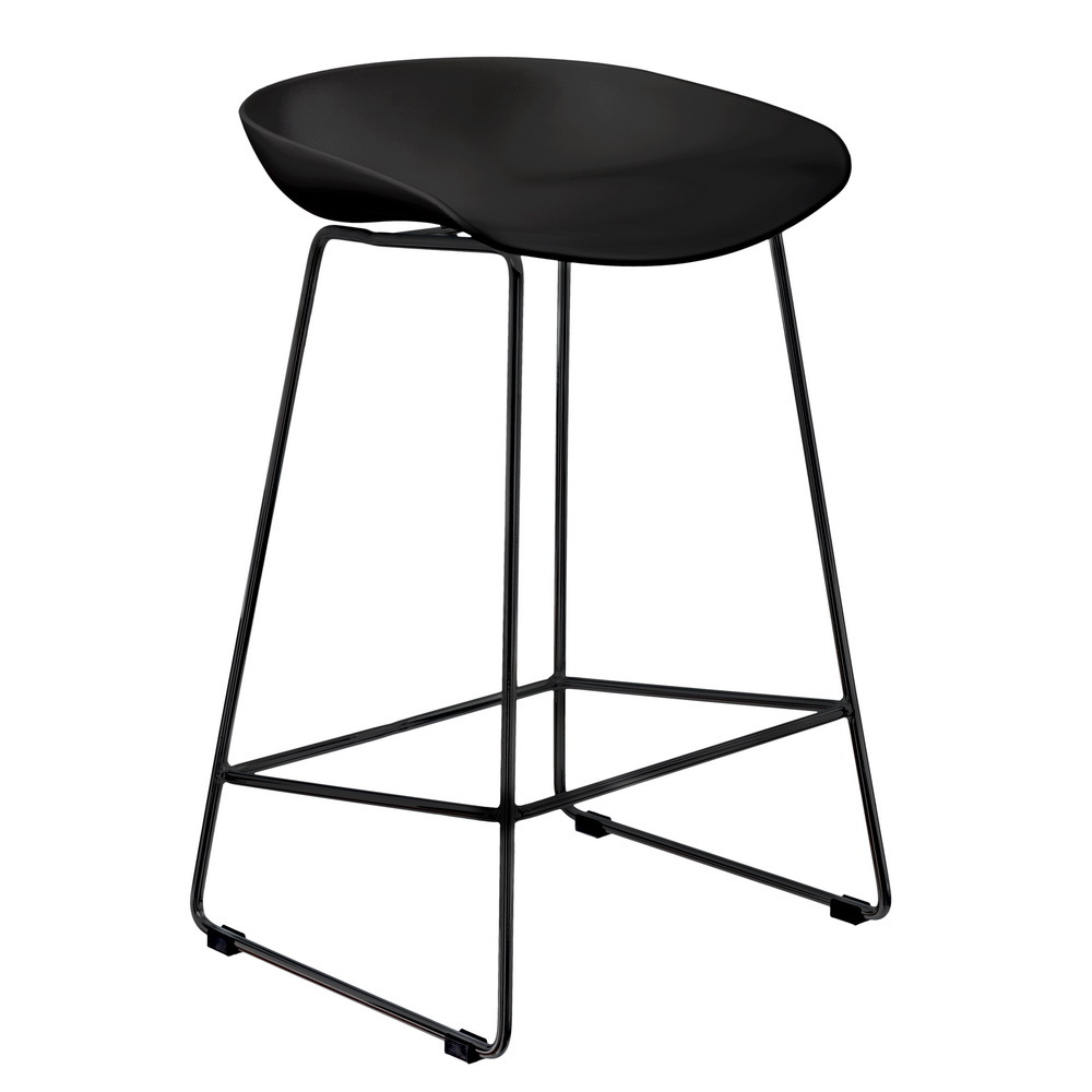 Утончённые металлические опоры, сиденье из пластика с невысокой спинкой - это минималистический современный дизайн полубарного стула Noel черный с черными ножками.