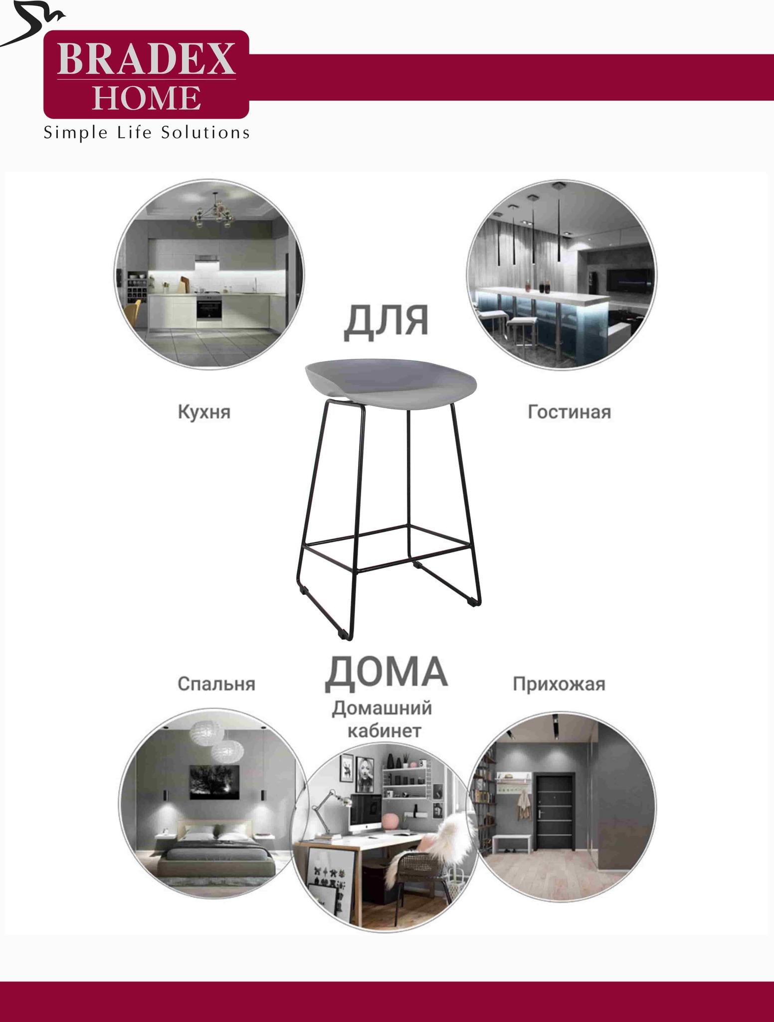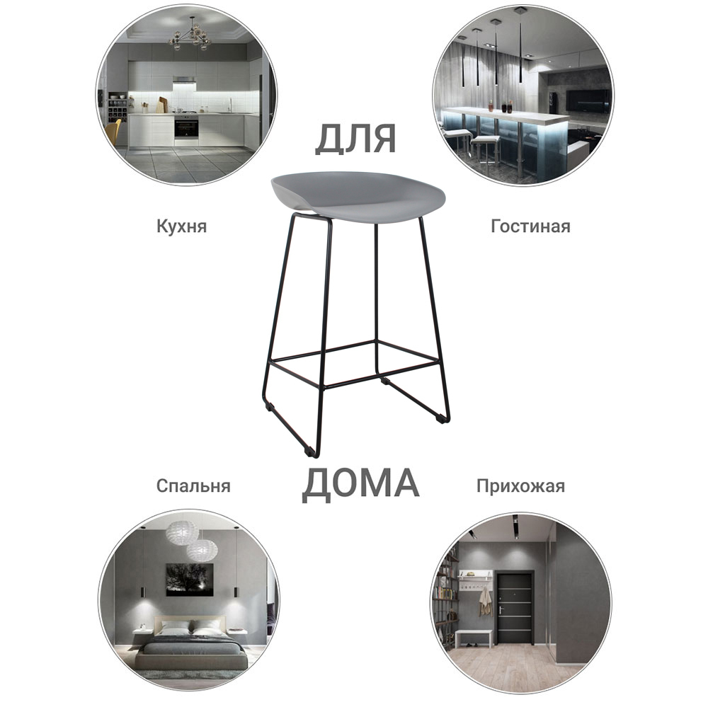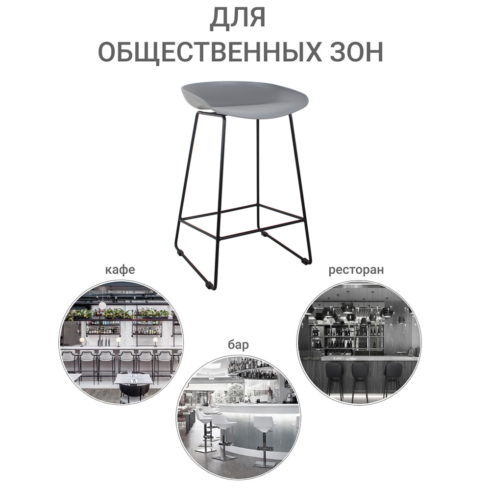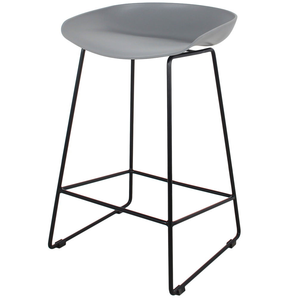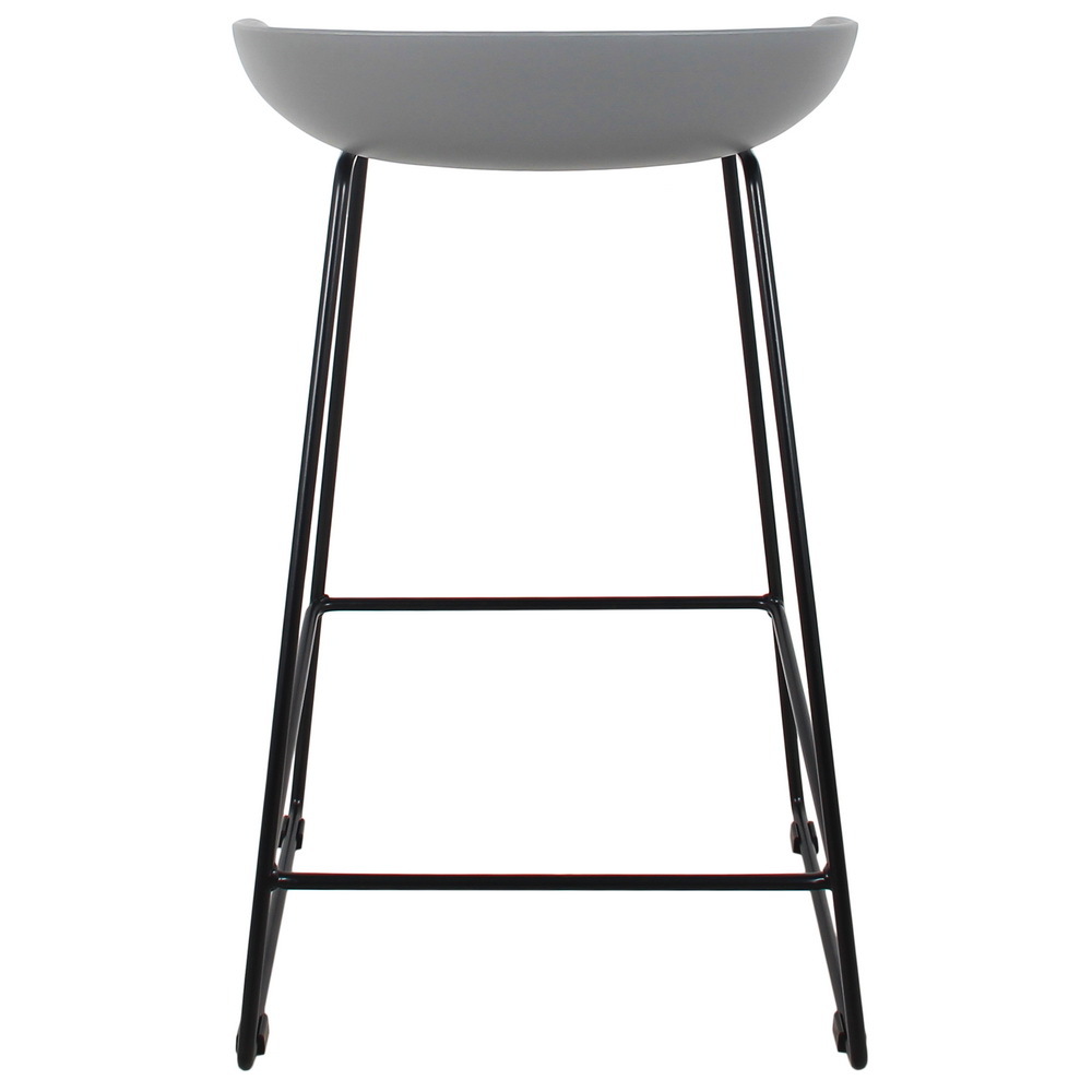 Утончённые металлические опоры, сиденье из пластика с невысокой спинкой - это минималистичный современный дизайн полубарного стула Noel серый с черными ножками.
