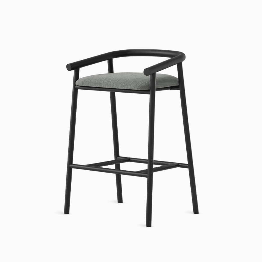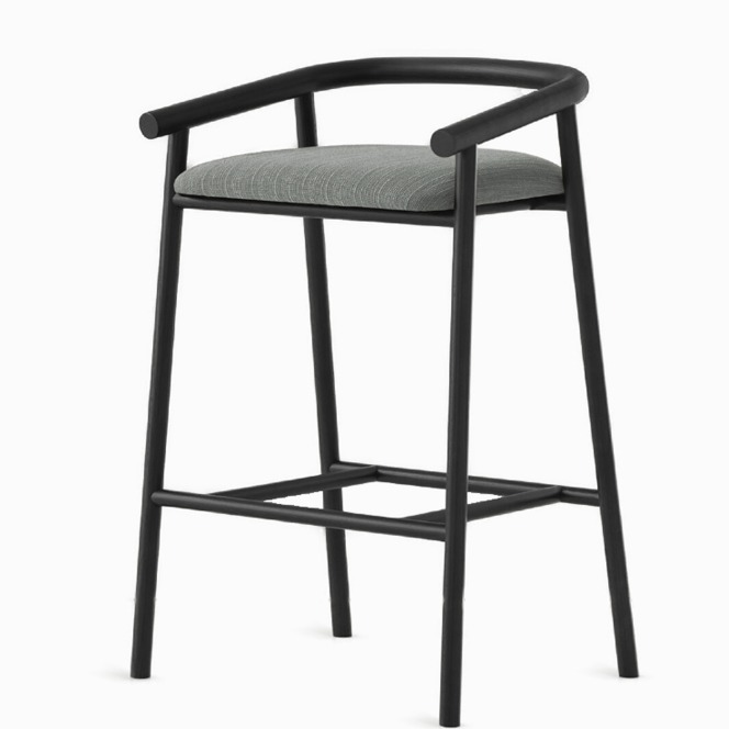 Полубарный стул Alter, 65 см, черный с серой обивкой