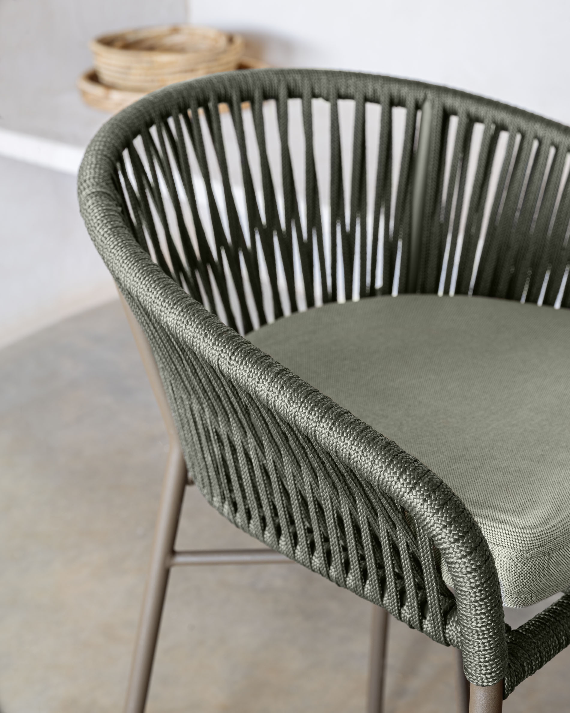 Стул Yanet от фабрики La Forma – непринужденный и современный вид под любое пространство. Стул Yanet – это ручная плетеная структура, которая обнимает мягкое сиденье. Такая гармония создает особую энергетику, побуждает погрузиться в состояние отдыха. И как же хорошо, что стул можно выставлять на улицу. Ведь свежий воздух и теплое солнце – лучшие попутчики для снятия стресса. Стул имеет металлический оцинкованный каркас, который покрыт черной порошковой краской. Его структура трубчатая, где ширина подлокотников составляет 3 см. Спинка создана из полипропиленового шнура со специальной защитой от ультрафиолета и влаги. Особая ценность в том, что плетение сделано вручную. В зависимости от выбранной модели, цвет спинки можно выбрать черный, темно-зеленый, серый, терракотовый. Стул Yanet поставляется с подушкой с водонепроницаемым съемным чехлом. Ее высота – 5 см. Общая максимальная нагрузка – 130 кг. Размеры: ширина – 56 см, высота – 79 см, глубина – 50 см, глубина сиденья – 42 см. Вес изделия – 4,5 кг. Сборка не требуется. В коллекцию Yanet также входят высокие табуреты в аналогичном дизайне.