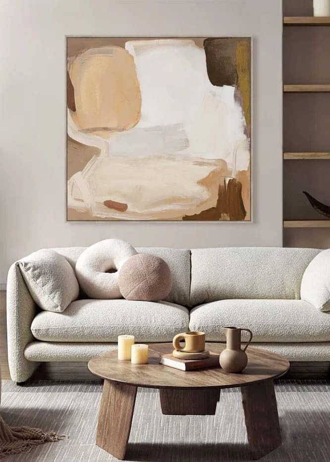 Нежный бежевый оттенок создает уютную и спокойную атмосферу, идеально подходя для оформления интерьеров в теплых тонах.
