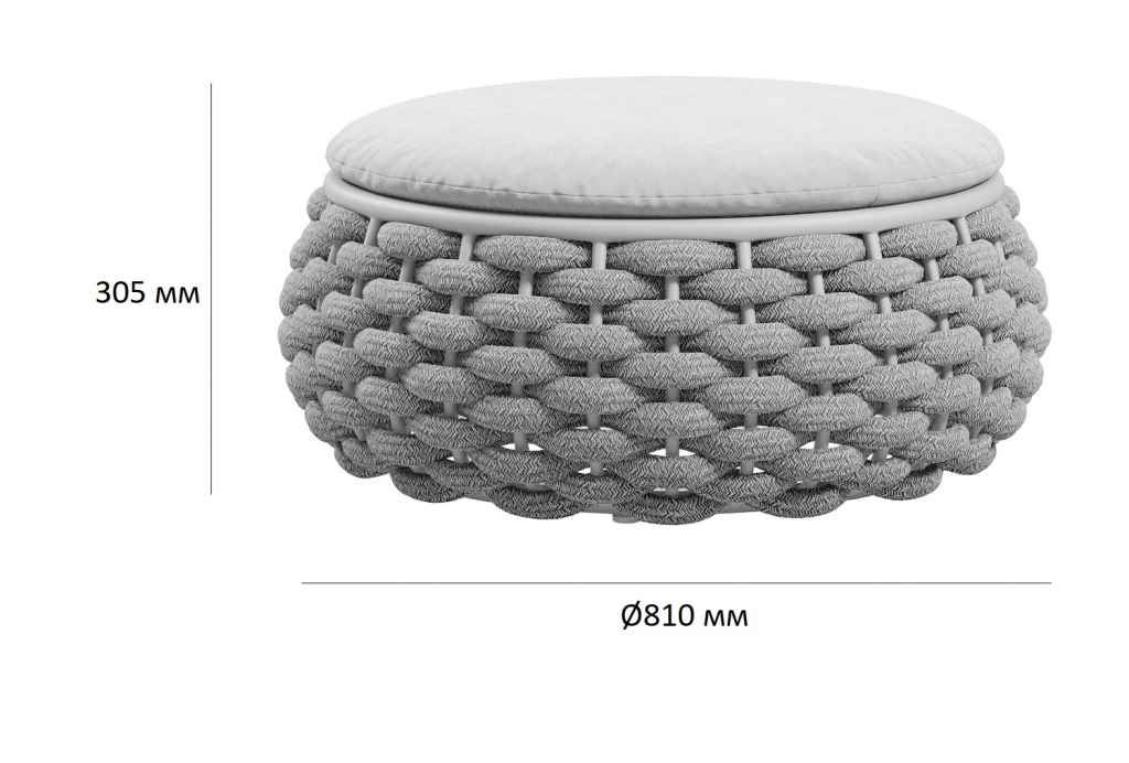 - Плетение выполнено из водонепроницаемого акрилового роупа 30х15 мм. Роуп снаружи изготовлен из материала, окрашенного акриловым раствором, внутренняя сердцевина покрыта EVA для придания прочности. Цвет - R113.