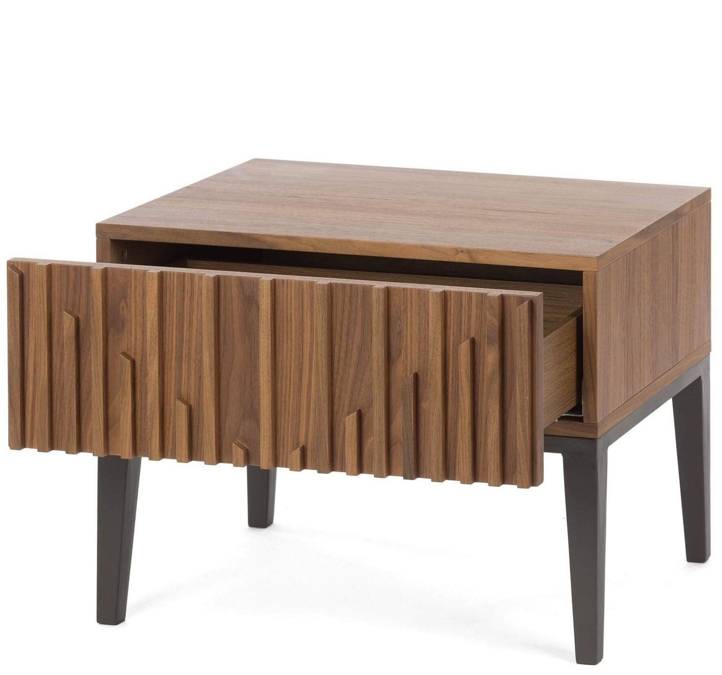 Эта тумба выделяется своим лаконичным и современным дизайном. Чистые линии и гармоничное сочетание орехового цвета с черными металлическими ножками делают её универсальным решением для различных стилей интерьеров.