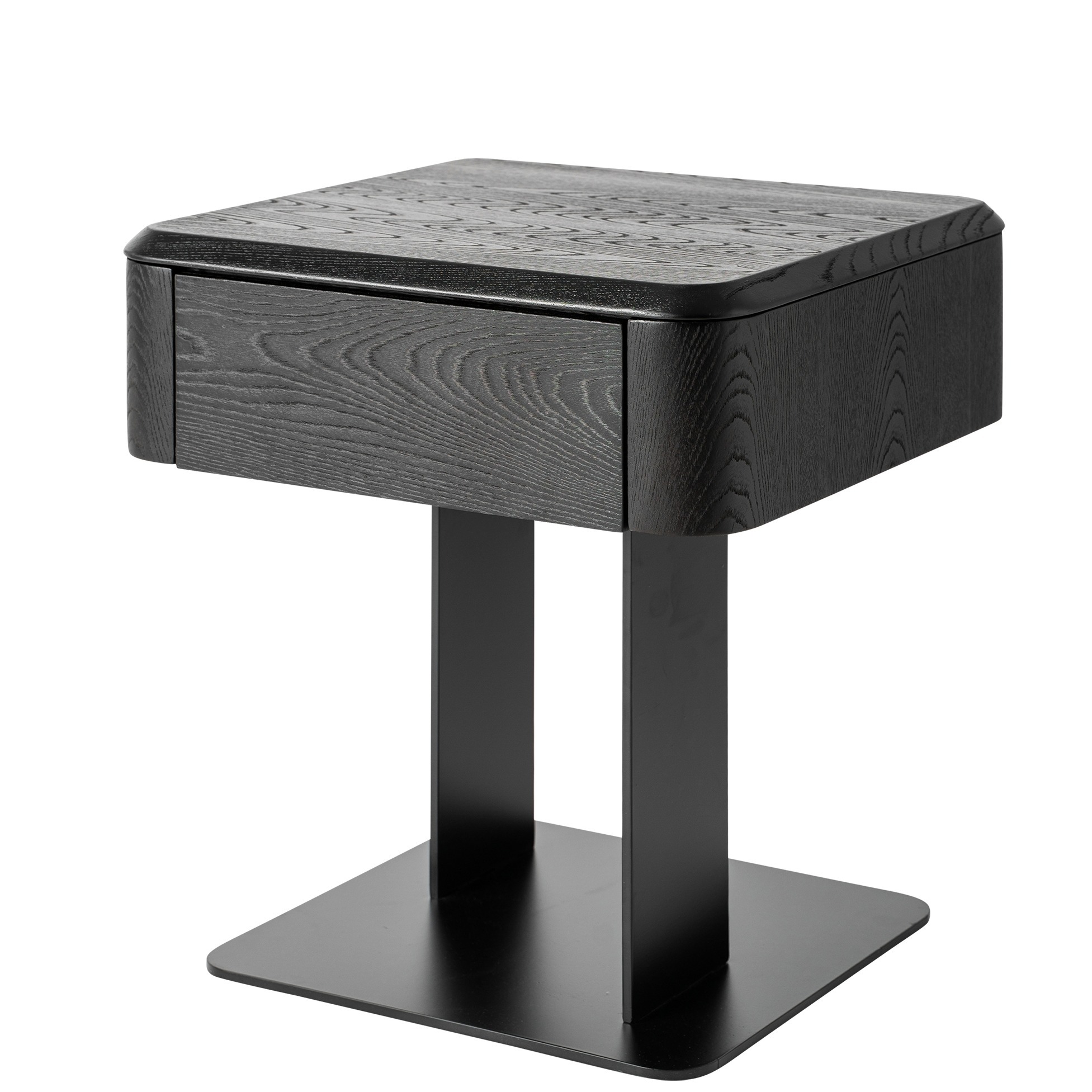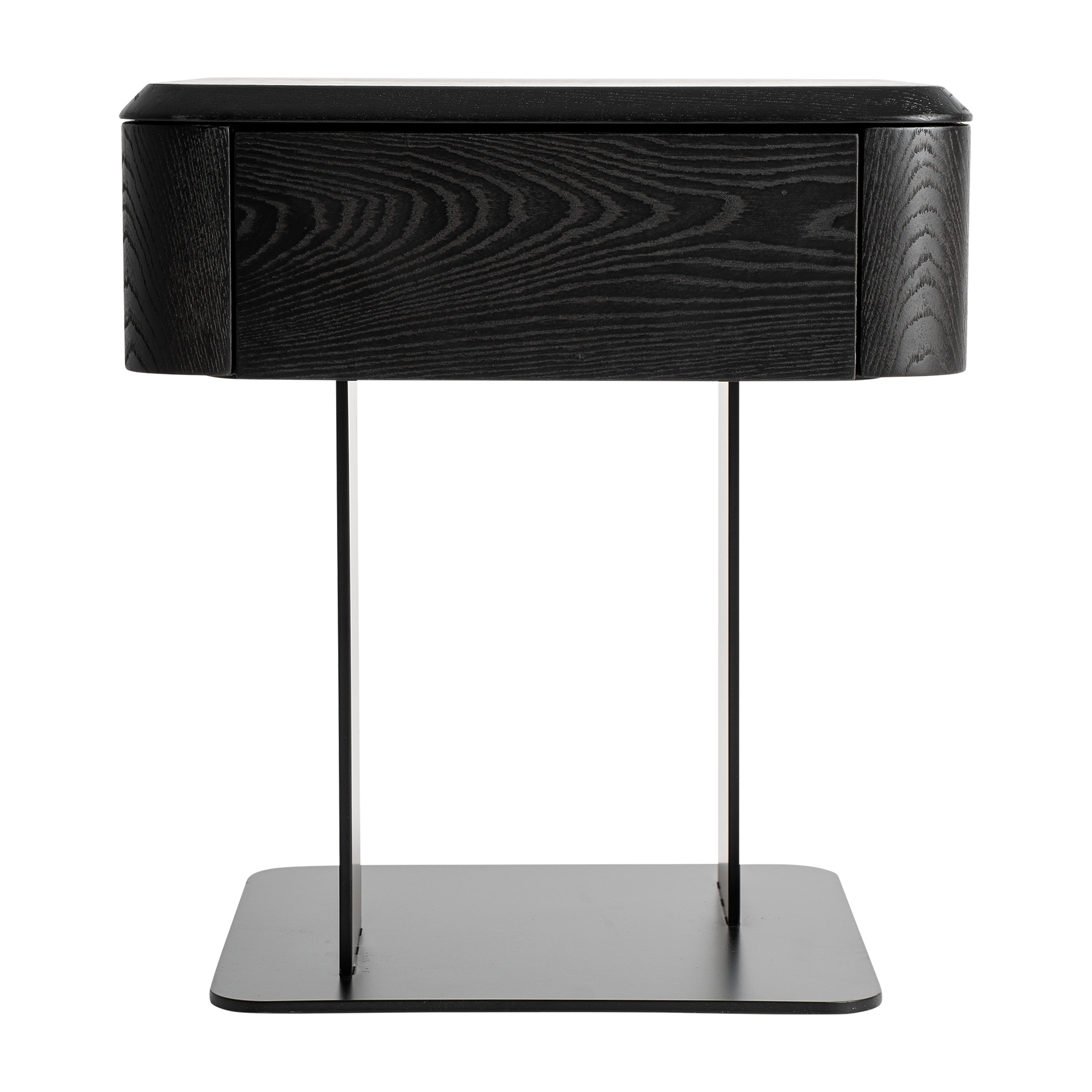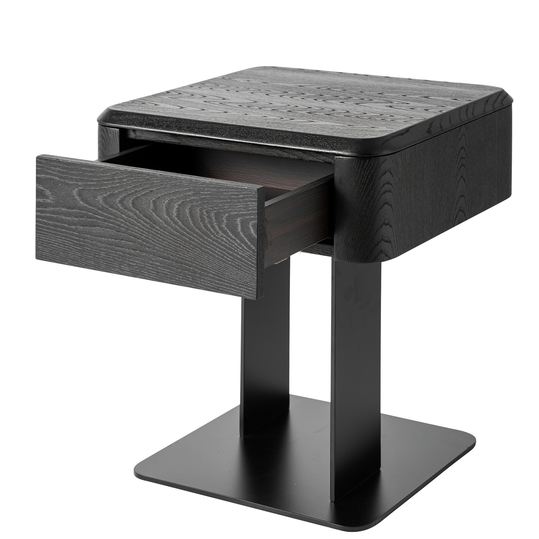 Прикроватная тумбочка Caiza в современном стиле, изготовлена из черного МДФ в сочетании со шпоном черного вяза и черным железом.