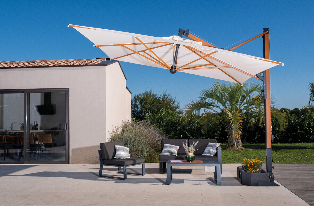 Профессиональный зонт Galileo Wood, который уже высоко ценится за его технические характеристики и практичность использования, обновлен с появлением отделки с эффектом дерева, что дополняет предложение для изысканной и следящей за тенденциями публики. Модель снабжена выдвижной системой открытия-закрытия зонта, которая позволяет легко закрывать зонт, не передвигая мебель.