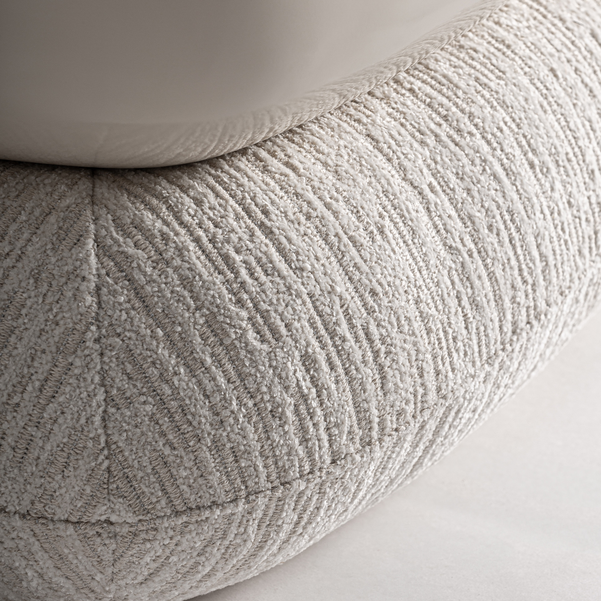 Подставка для ног изготовлена из бежевого МДФ в сочетании с бежевым полиэстером и поролоном.