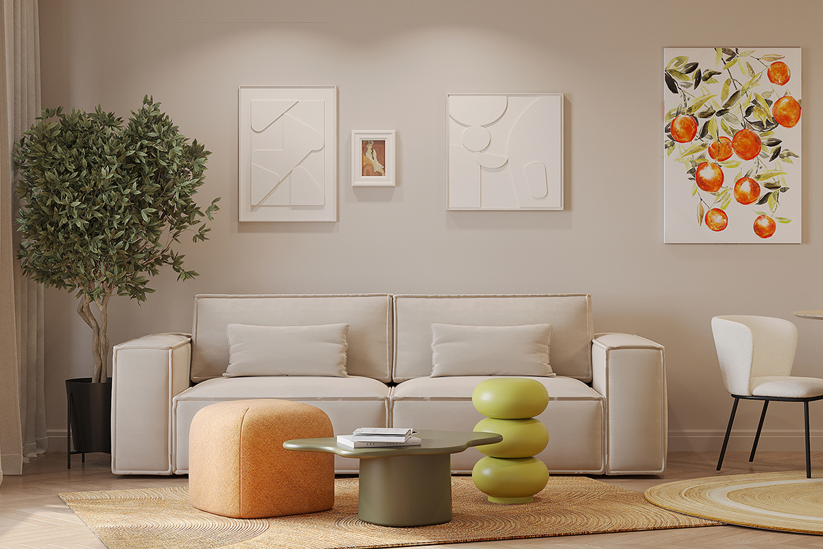 Благодаря обивке из практичной рогожки за мебелью легко ухаживать. Материал обладает высокой прочностью, устойчивостью к пятнам и загрязнениям. Мягкий пенополиуретановый наполнитель создает комфортные условия для отдыха.