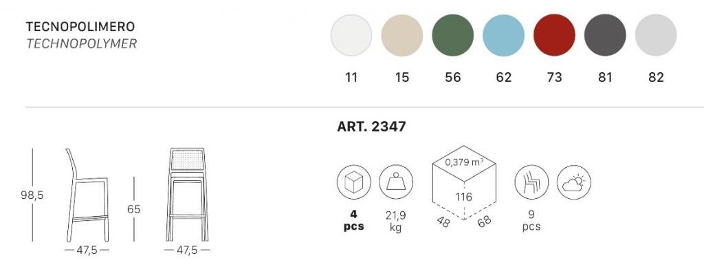 Пластиковый полубарный стул от дизайнеров Arter & Citton дополняет семейство Emi традиционным внешним видом с небольшими отверстиями в корпусе. Стул имеет технополимерную структуру, армированную стекловолокном по технологии воздушного литья.