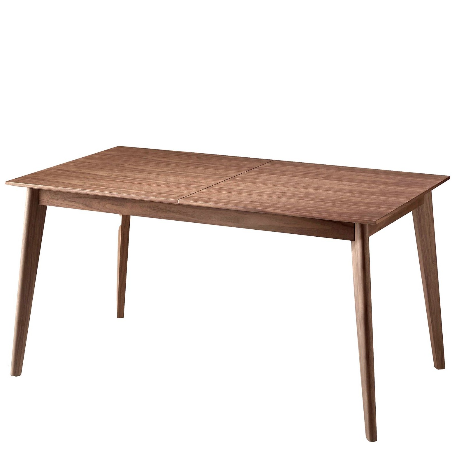Данная модель имеет традиционную форму. Конструкция простая и понятная — это прямоугольная столешница и поддерживающий ее каркас, состоящий из рамы и четырех ножек. В качестве материалов изготовления использованы МДФ и шпон ореха, который отличается красивым природным орнаментом и теплым светло-коричневым цветом. Поэтому стол станет настоящей находкой для всех любителей скандинавского или эко-стиля.