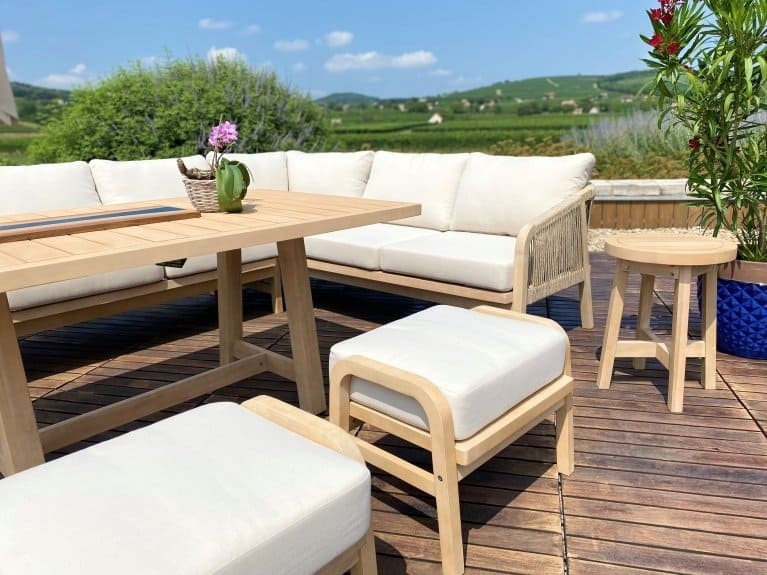 Пуф Ravona изготовлен из древесины тропической АКАЦИИ (FSC), которая хорошо устойчива к атмосферным воздействиям. Цвет этой натуральной твердой древесины представляет собой натуральный цвет с мелкой текстурой, придающий древесине приятный теплый вид. Ravona - это стиль и элегантность на Вашей веранде. Особенности: Материал - АКАЦИЯ, отделка экомаслом тик Light #01A. Древесина, из которой изготовлена мебель, имеет сертификацию FSC (Forest Stewardship Council) - гарантия качества и происхождения древесины. Знак FSC - показатель того, что продукция происходит из леса, в котором ведется экологически и социально ответственное лесное хозяйство. Благодаря своей долговечности, прочности и устойчивости к вредителям эта древесина была создана для изготовления садовой мебели. Страна происхождения древесины: Вьетнам, Малайзия. Средняя плотность древесины: 550 кг/м3. Анодированная фурнитура из нержавеющей стали. Подушки в комплекте, ткань подушек - олефин, наполнитель - толстый поролон. Материалы устойчивы к УФ-излучению и другим погодным воздействиям. Цвет подушек - бежевый. Открыть инструкцию по уходу. Вся деревянная мебель должна обрабатываться специальным маслом или пропиткой минимум 1 раз в 6 месяцев (в условиях высокой влажности обработку следует проводить чаще). Для данной мебели не рекомендуются резкие температурные перепады. Мебель из дерева акации должна использоваться только под навесом. Дерево является натуральным материалом, поэтому любые трещины, неравномерные природные рисунки, различность оттенков ‐ являются естественным процессом, который вызван температурными изменениями или влажностью.