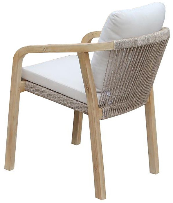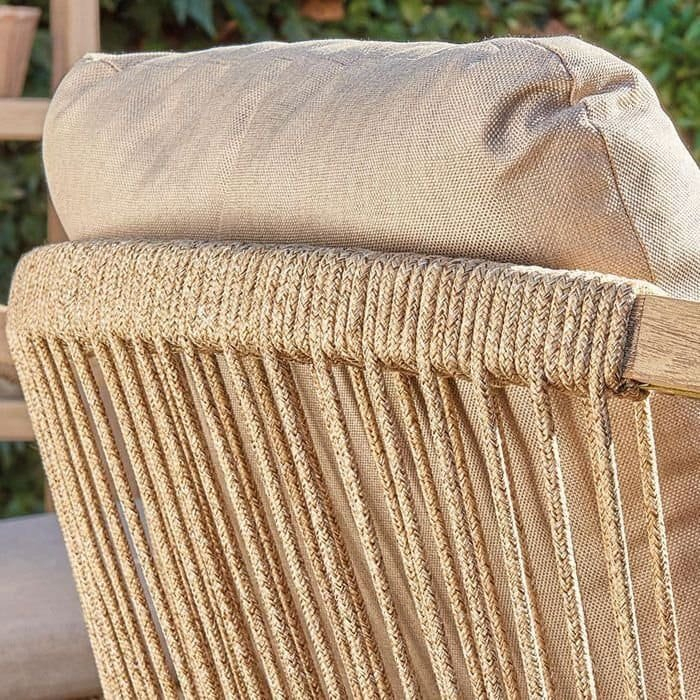 - Веревочное плетение роуп 6 мм толщиной на спинке и подлокотниках кресел излучает стиль в сочетании с деревянными поверхностями.