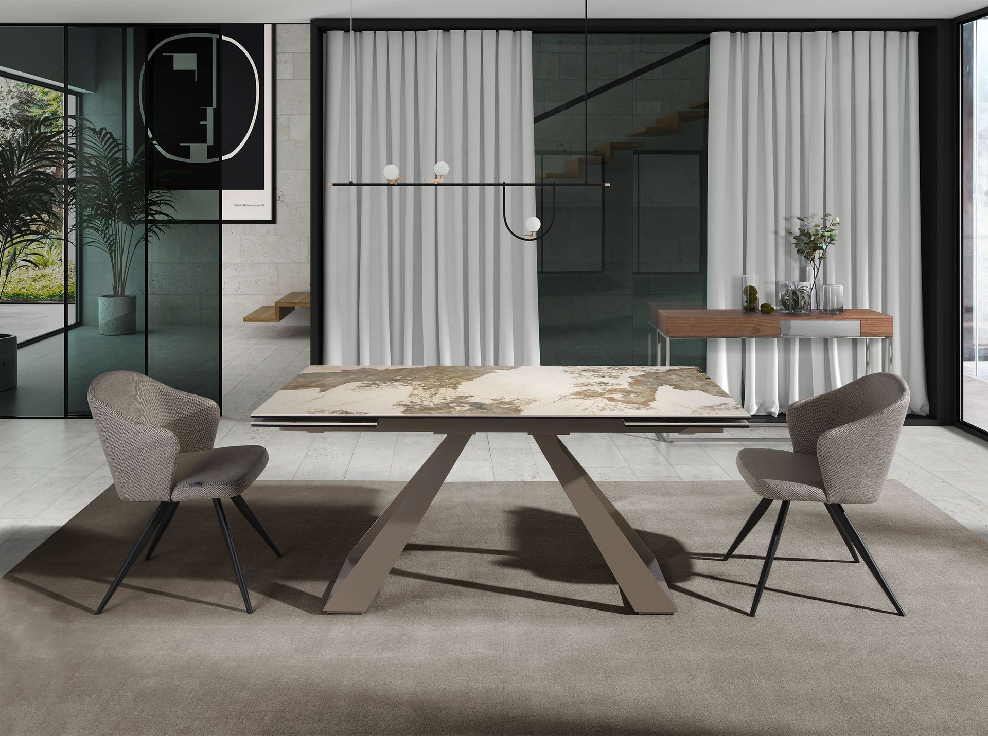 Раздвижной обеденный стол 1117/MC22052DT-MARMOL от фабрики Angel Cerda – керамика в мраморной отделке и эффектная геометрия стали.