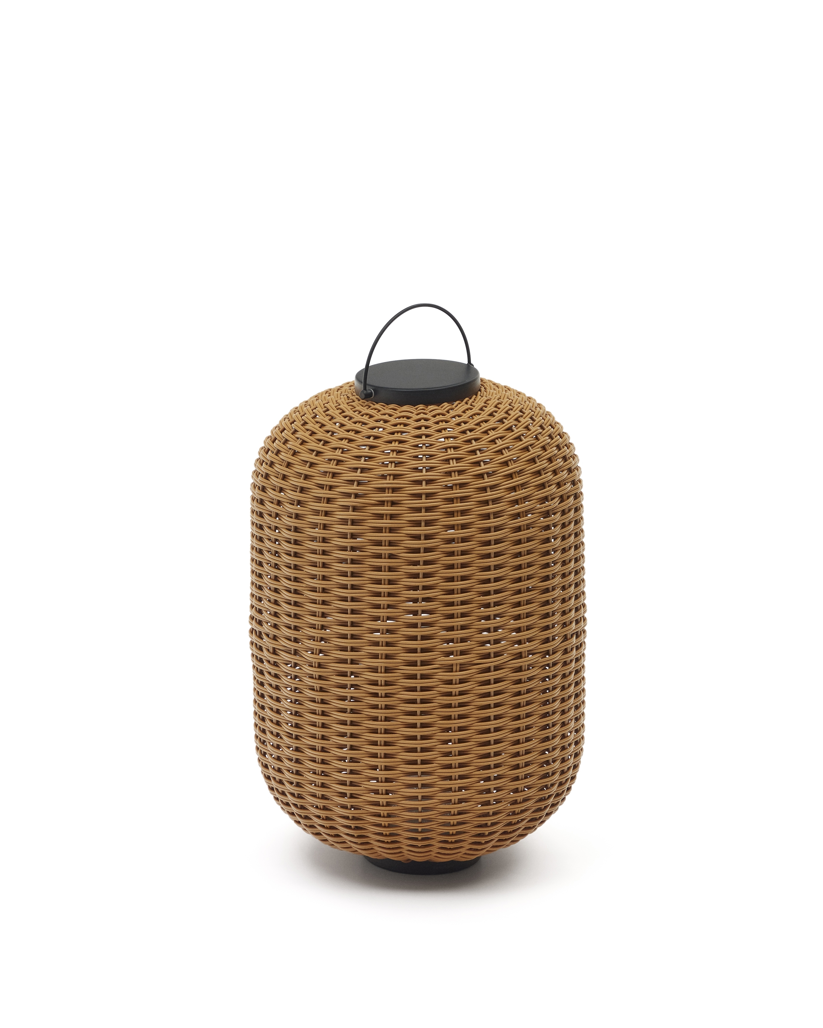 Коричневая лампа из полиротанга с двумя ручками, поэтому ее можно повесить в двух положениях. Теплый светодиодный свет, который заряжается с помощью прилагаемого USB-кабеля. Выберите идеальное освещение благодаря трем уровням интенсивности. Подходит для интерьеров и крытых открытых пространств.