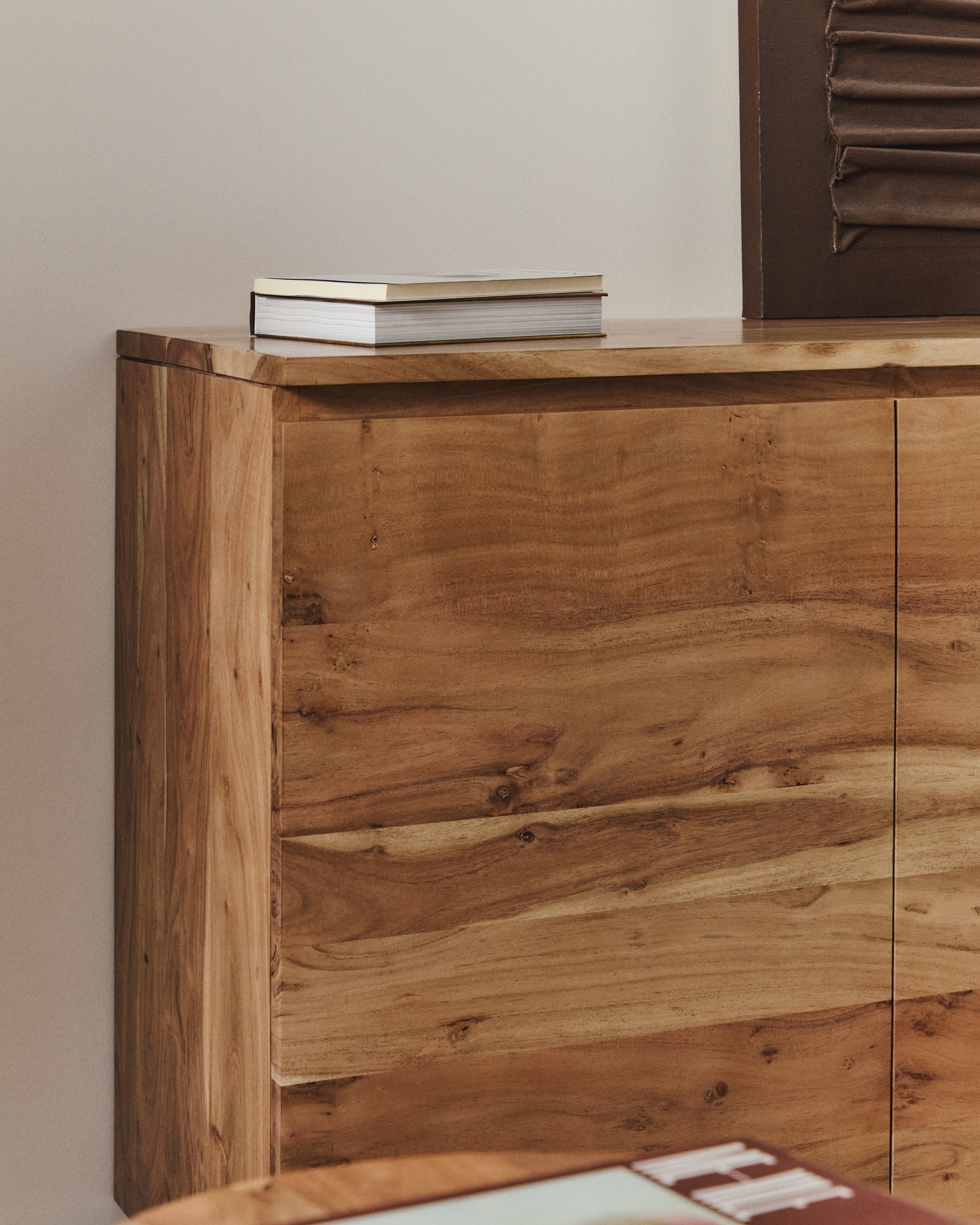 Коллекция Uxue переопределяет функциональность и стиль в любом пространстве с ее чистым, современным дизайном. Массив акации с отбеленной отделкой передает уникальное тепло и подчеркивает текстуру дерева, добавляя свет и изысканность помещению. Каждая дверца идеально интегрирована в изделие, создавая гармоничный и минималистский вид, который адаптируется к любому типу декора, от самого современного до самого классического.