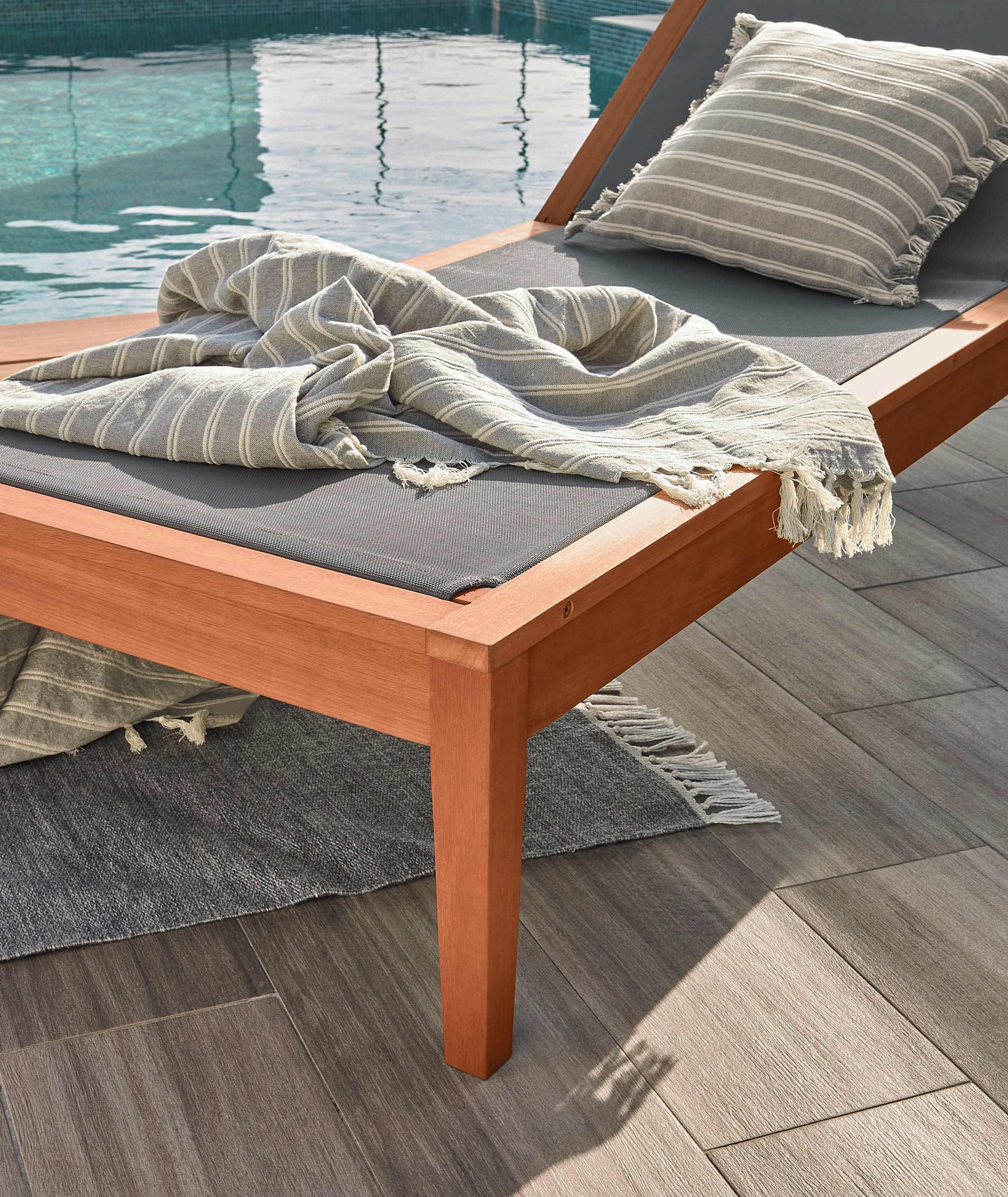- Изготовлен из массива эвкалиптового дерева, обработанного маслом с эффектом тика.
