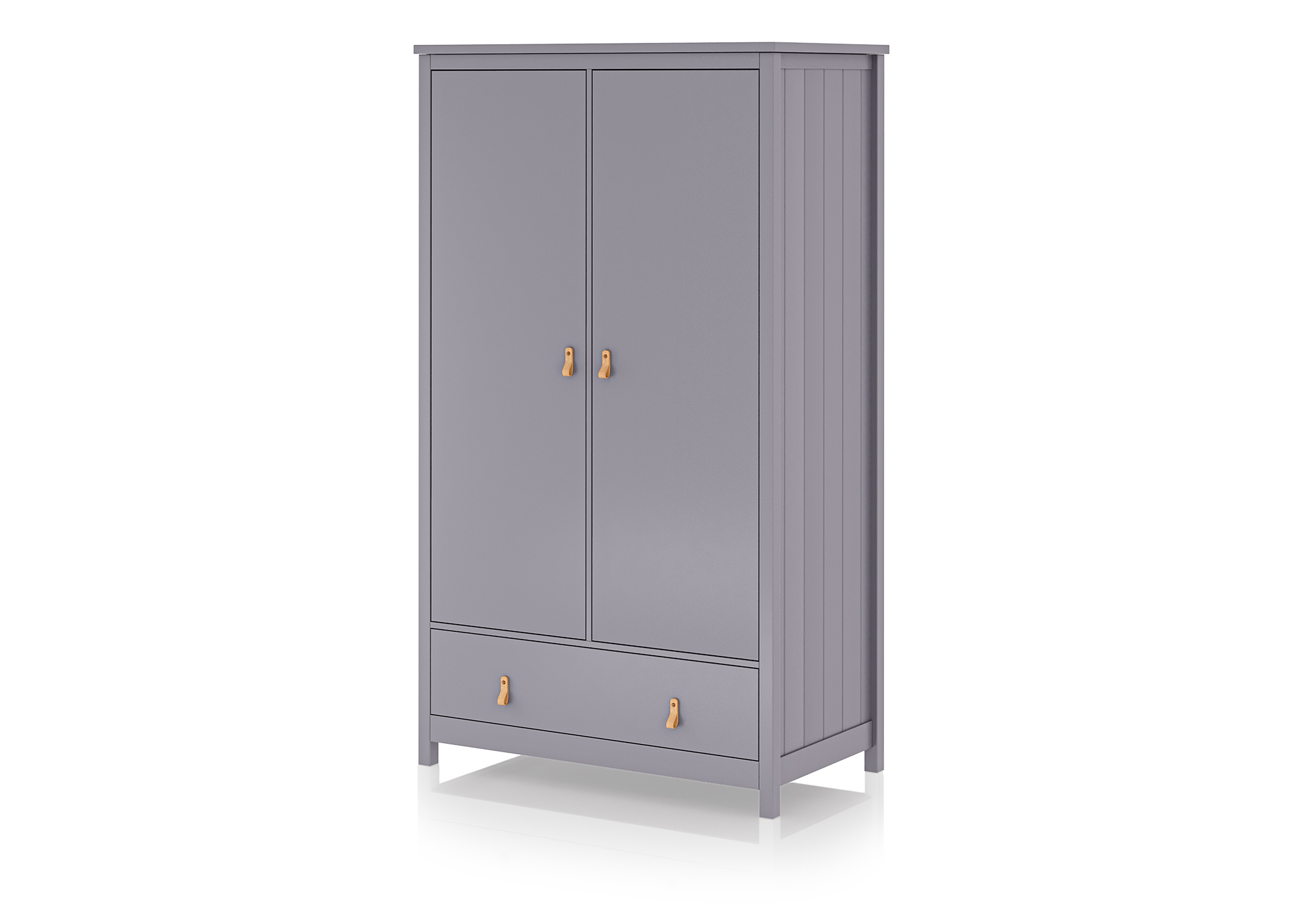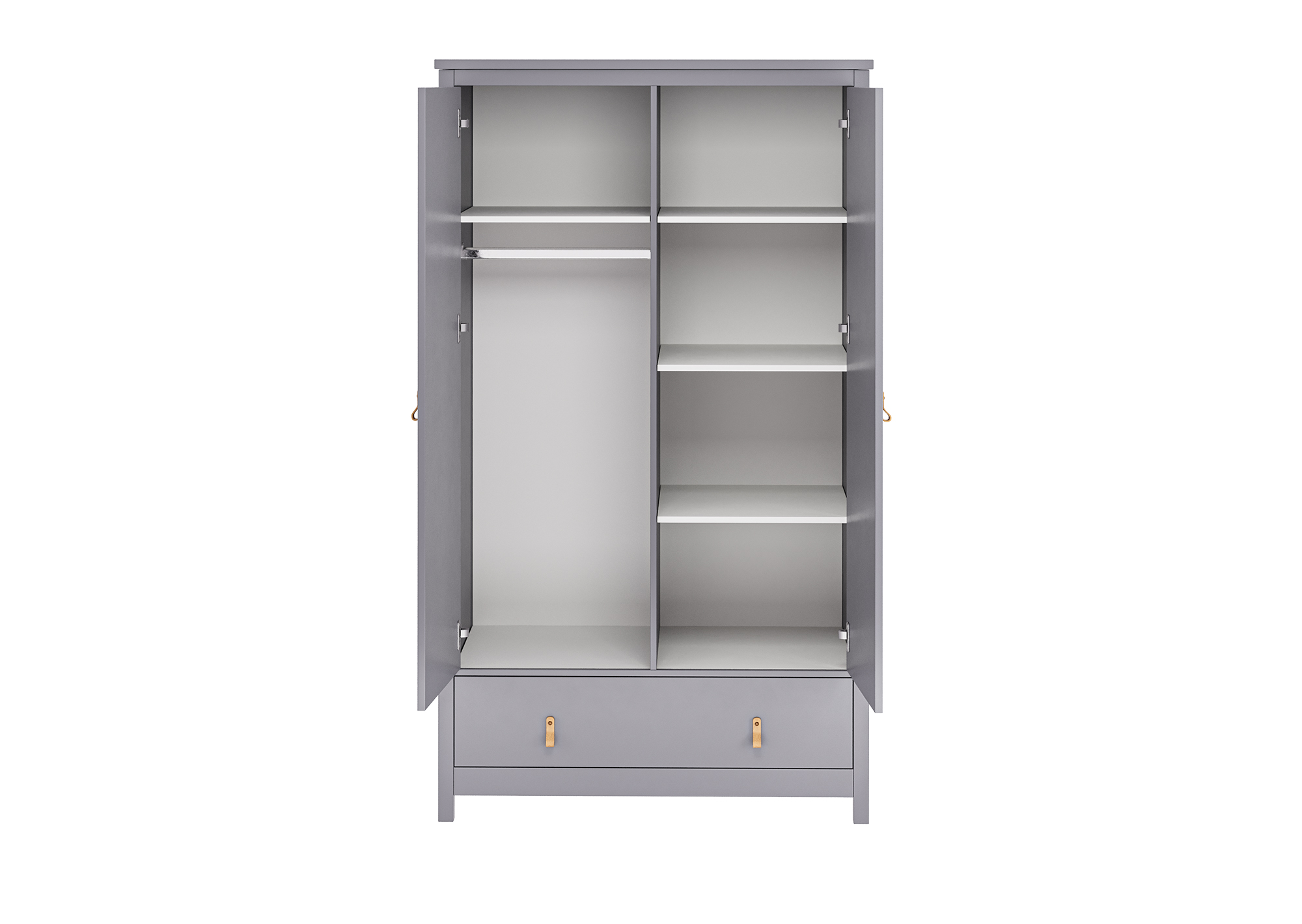 Двухстворчатый шкаф Wood имеет два отделения с полками и штангой.