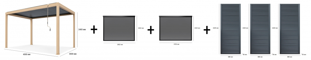 Оцените простоту дизайна алюминиевой перголыSKYPergs Plus с порошковым покрытием. Усиленная крыша выдерживает до 100 кг/м² снега, а регулируемая конструкция с жалюзи обеспечивает комфорт круглый год и в любую погоду. Водонепроницаемая конструкция обеспечивает эффективный дренаж для долговечности в любую погоду. Алюминиевые верхние жалюзи срегулировкой угла наклона управляются с помощью ручной рукоятки, позволяя без усилий контролировать уровень освещенности и тени. Линейный, минималистичный профиль перголы гармонично вписывается в современные архитектурные решения, подчеркивая стиль любого outdoor-пространства. Встроенная разноцветная LED-подсветка создает уютную атмосферу в вечернее время, превращая террасу, патио или зону отдыха в многофункциональное пространство для любого времени суток. Дополнительные опции - раздвижные стеклянные панели, боковые шторы, жалюзи и экраны - обеспечивают защиту от ветра, дождя и посторонних взглядов, гарантируя комфорт и приватность в любую погоду. Состав комплекта: Пергола металлическая 3х4 м +LED-подсветка, размер:3000х4000х2400 мм - 1 шт. Экран текстиленовый3 м, размер:2622х2242 мм - 1 шт. Экран текстиленовый 4м, размер:3702х2242 мм - 1 шт. Жалюзивертикальные металлические,размер:886х50х2220 мм - 3 шт. Особенности перголы: Материал: окрашенный алюминиевый сплав: 6063-T5. Это универсальный материал с превосходной поверхностью и достойной прочностью, разумный выбор для архитектурных и легких конструкционных применений, особенно когда важны эстетика и коррозионная стойкость. Цвет: Fresh Teak (эффект "под дерево"). Двойные алюминиевые жалюзи с порошковым покрытием на крыше. Размер:130х30х1.3 мм. Разноцветная LED-подсветка (7 цветов). Стойка: 100х100х1.5 мм. Основная балка: 150х62х1.5 мм. Желоб: 58х56х1.3 мм. Управление: ручное, с помощью рукоятки длиной 1,5 м. Особенности экранов: Полузатеняющие. Застежка-молния. Текстилен (78% ПВХ и 22% полиэстера). Цвет алюминия: порошковое покрытие темно-серого цвета. Особенности жалюзи: Алюминиевые жалюзи: 2220x886x50 мм. Алюминиевые соединительные планки: 2220x525x25 мм. Порошковое покрытие темно-серого цветаRAL 7016. Тип фиксации: неподвижная,с помощью регулировочных винтов. Преимущества: водонепроницаемость и энергосбережение. Инструкция по сборке. Для уточнения всех возможных вариантов материала и цвета данного изделия обращайтесь к нашим менеджерам.