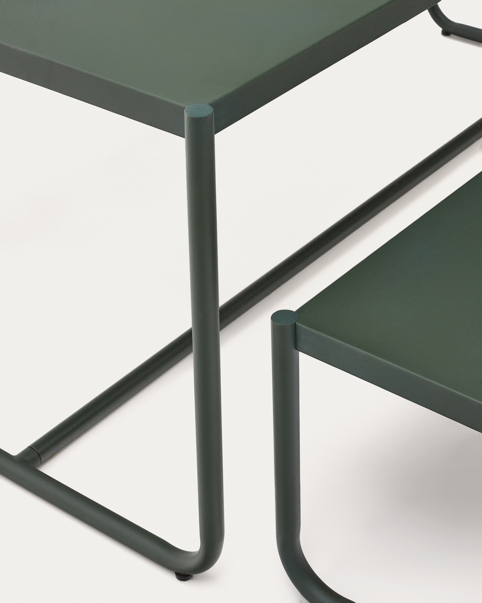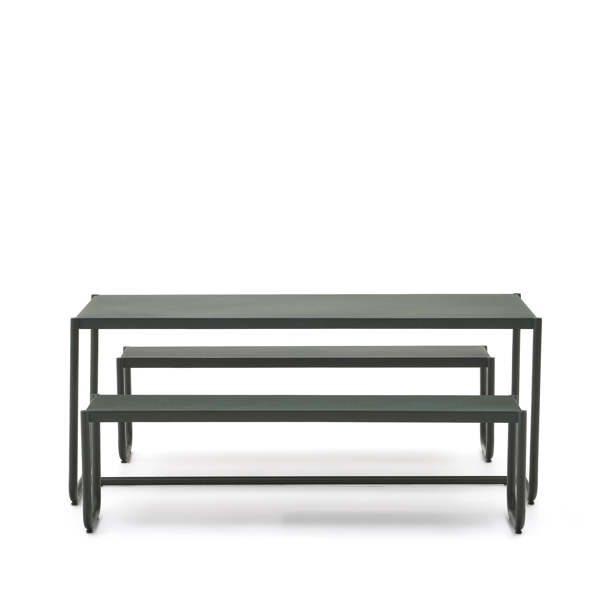 Sotil идеально подходит для еды, ужинов и особых случаев. Он изготовлен из оцинкованной стали, что на 100% подходит для использования на открытом воздухе. Кроме того, скамейки можно хранить под столом, чтобы минимизировать использование пространства.