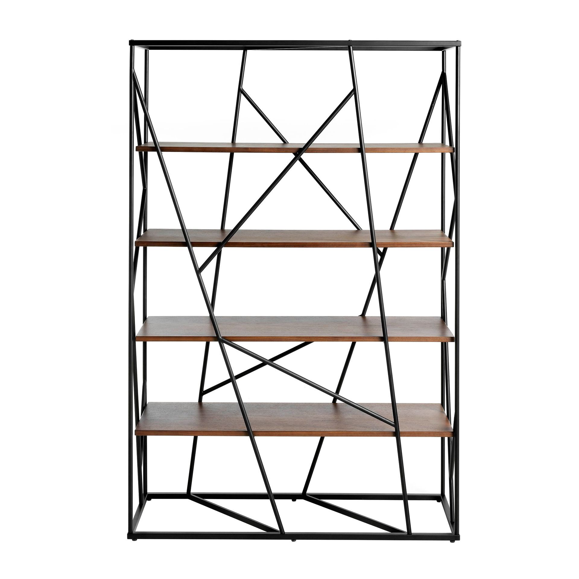 Стеллаж F6089-NOGAL имеет металлическую стальную конструкцию, окрашенную в серый или черный цвет эпоксидной краской. Внутри нее находятся шесть полок.